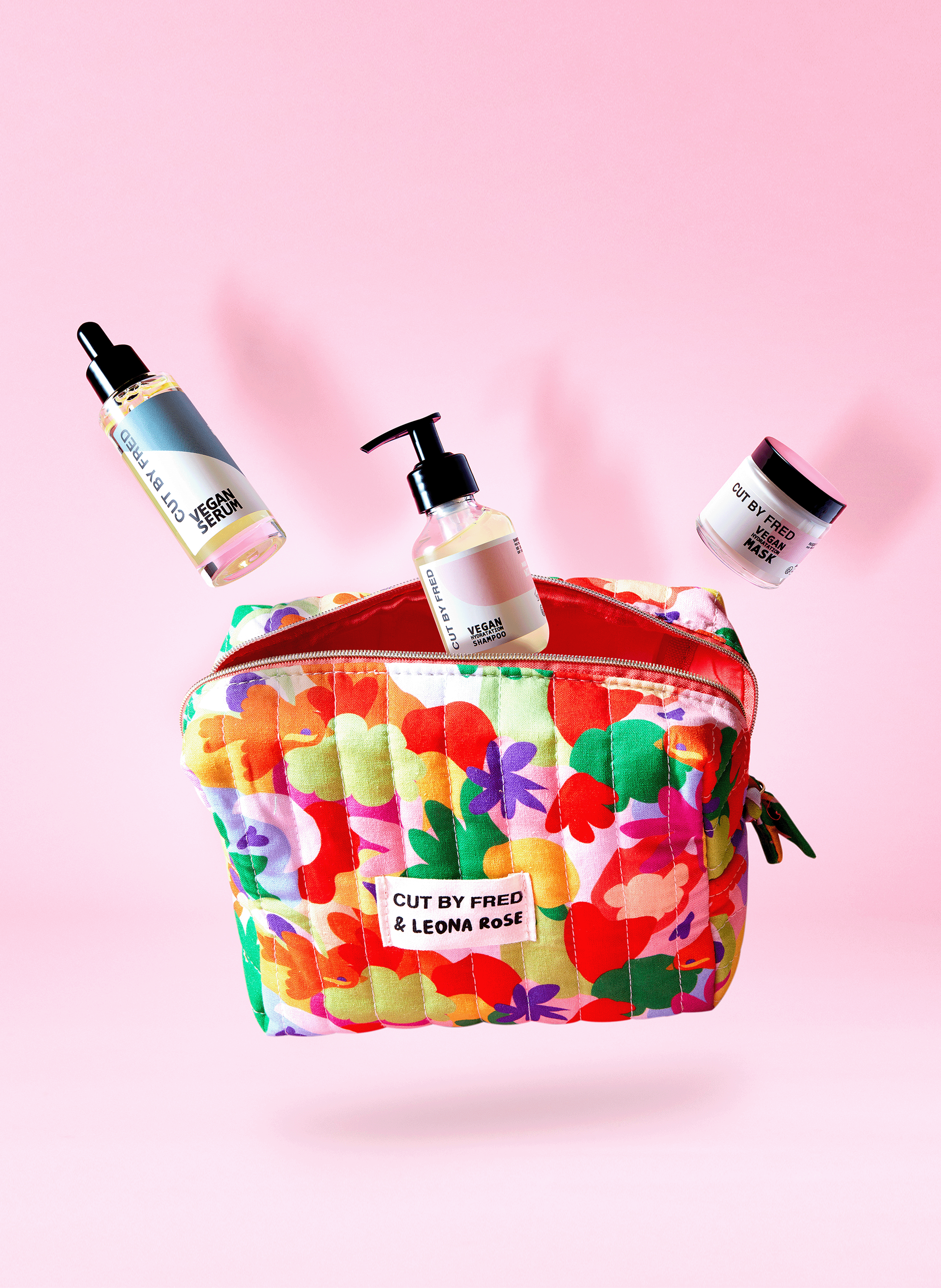 Indulge in the hydration discovery kit from the French hair care expert Cut by Fred. For the year 2024, this edition is adorned with creations by the artist Léona Rose and contains three flagship products from the brand: the Vegan Hydration Shampoo, the Vegan Serum, and the Vegan Hydration Mask. For hydrated curls in all circumstances.