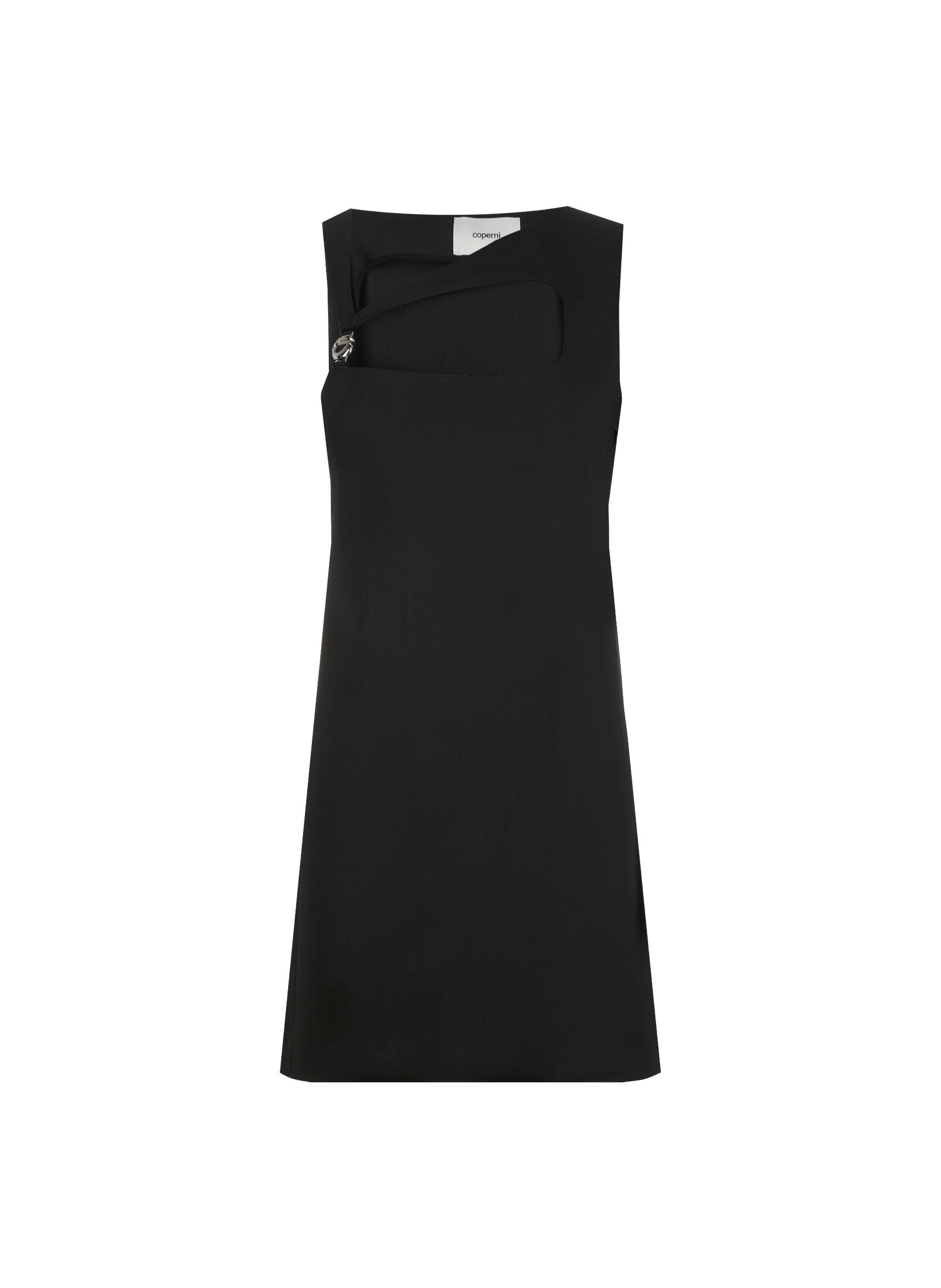 Architecturales et avant-gardiste, les créations Coperni sont teintées d'une élégance sobre résolument moderne. La maison française revisite ainsi la traditionnelle petite robe noire en lui offrant une coupe courte et droite. Cette pièce sans manches flattera toutes les silhouettes. Simplement éclairé du logo argenté sur le côté droit de la poitrine, cet atemporel twisté se portera aussi bien avec une paire de mules que de baskets, selon l'occasion.