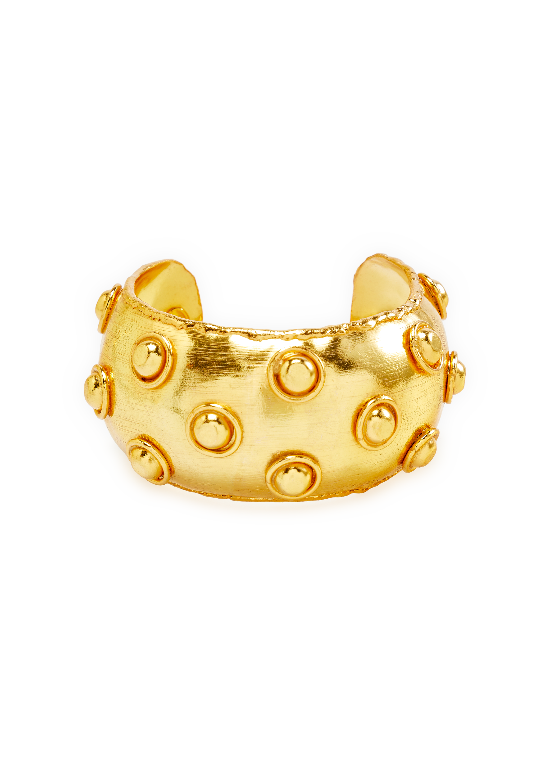 Recognisable at first glance, Sylvia Toledano’s jewellery is a favourite with fashionistas the world over. Inspired by the colourful and distinctive jewellery of the Berber people of North Africa, this bracelet has a unique, graphic design. Crafted in yellow gold-plated brass, the thick Dune bracelet has a charismatic design that won’t go unnoticed.