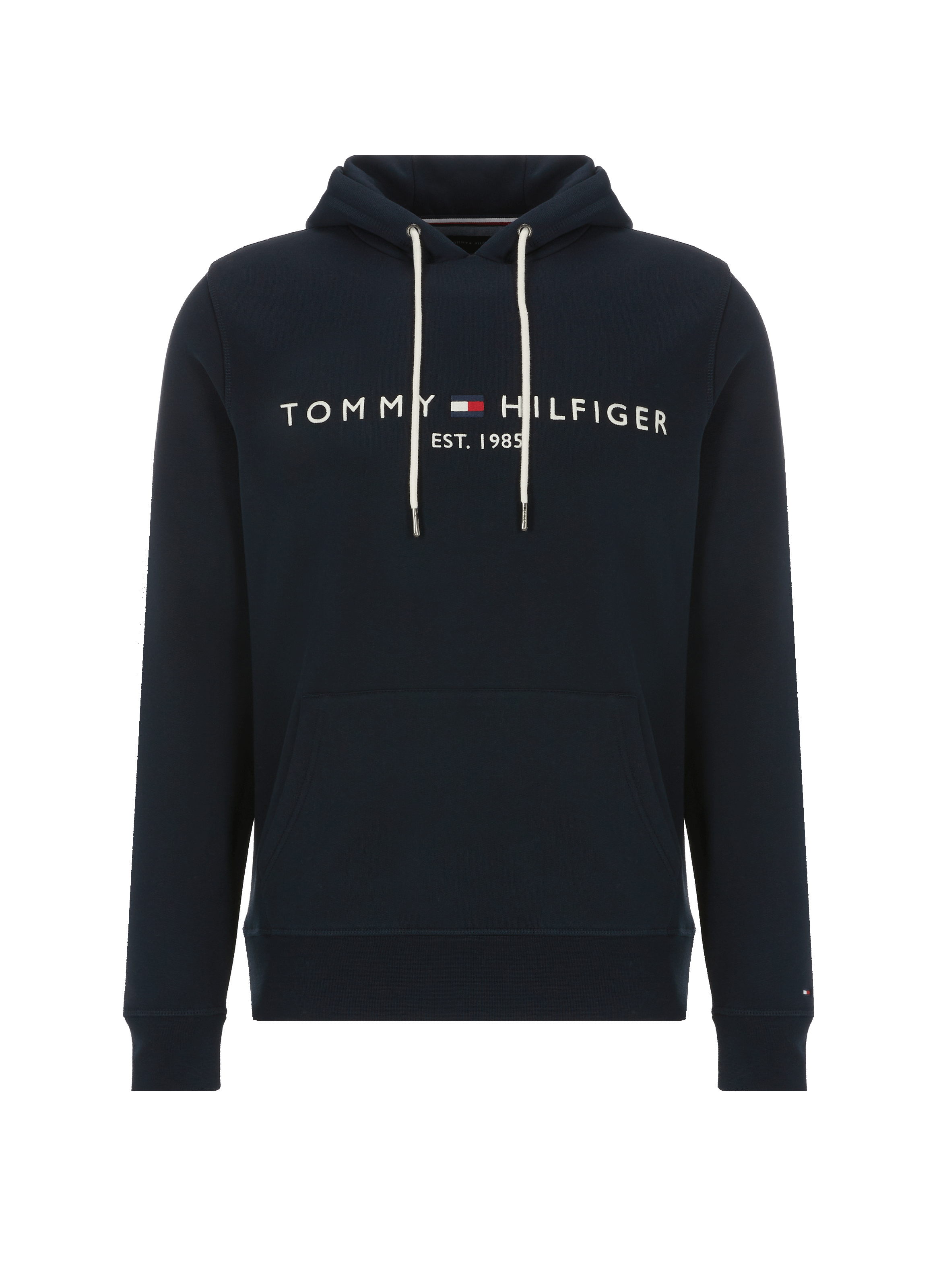 As the logo and tricolour flag embroidered on the chest indicate, this navy blue hoodie with a kangaroo pocket is by Tommy Hilfiger. Urban and casual yet preppy, this model from the American label's Spring-Summer 2023 collection is made from a comfortable organic cotton jersey blend. One to wear all year round.