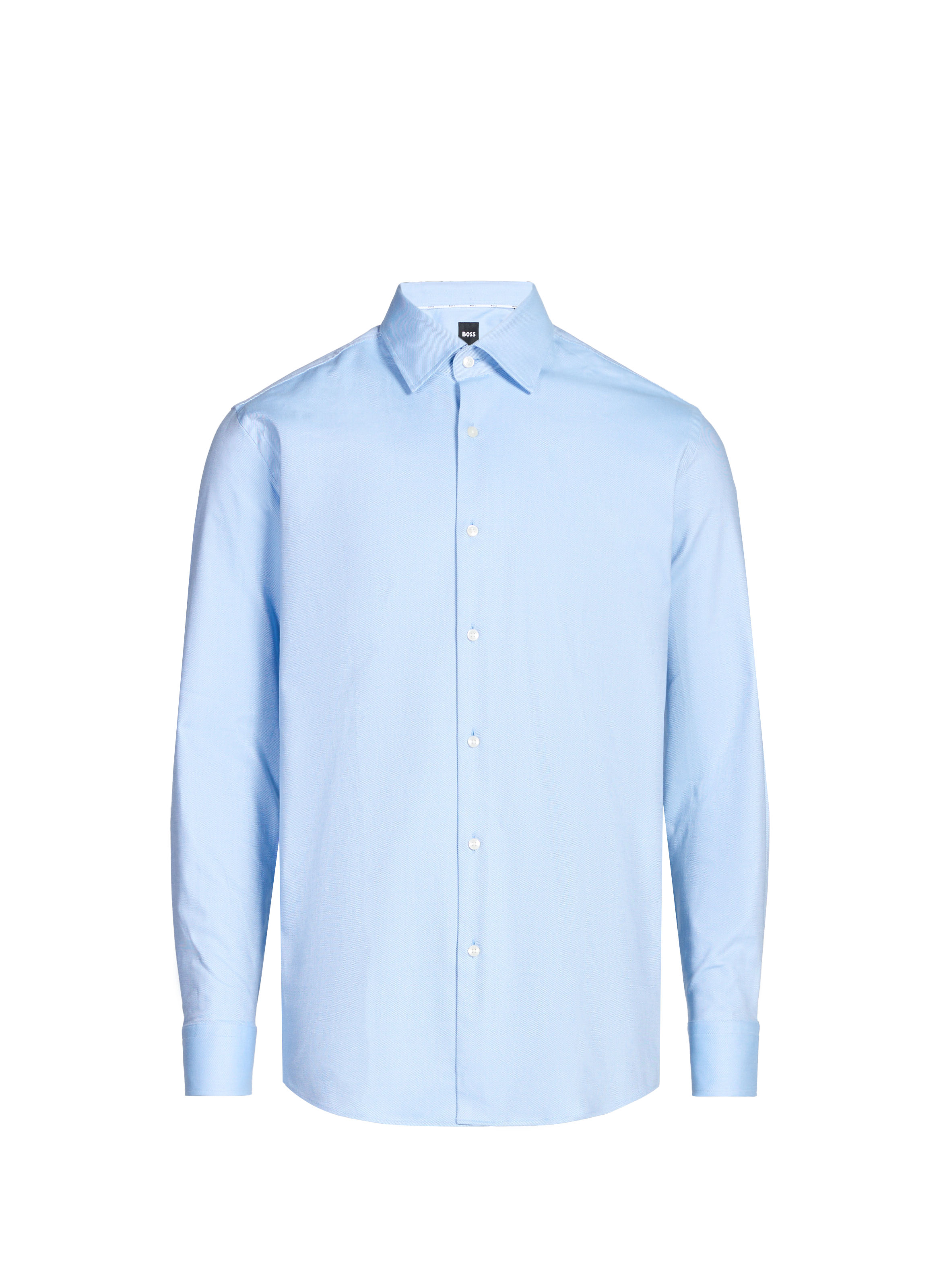 The slim cotton poplin shirt by Boss. Perfect for men looking to combine style and comfort, this shirt is designed in a modern slim fit that enhances the silhouette. Its soft pastel blue color and smooth texture make it an ideal choice for professional meetings or special occasions. Featuring a classic collar and discreet buttons, it promises to remain a staple in your wardrobe. Add a touch of understated sophistication to your collection with this timeless piece.