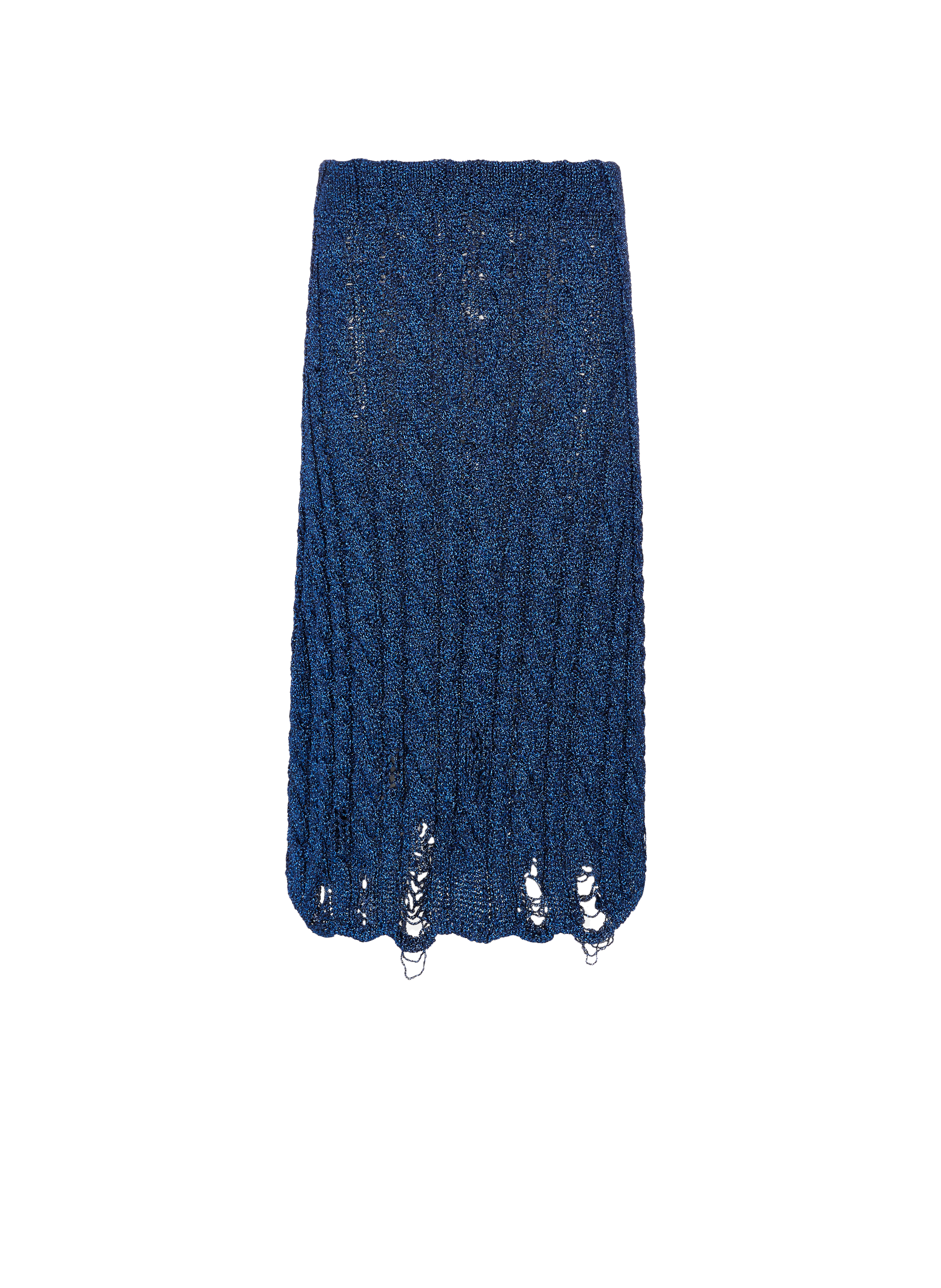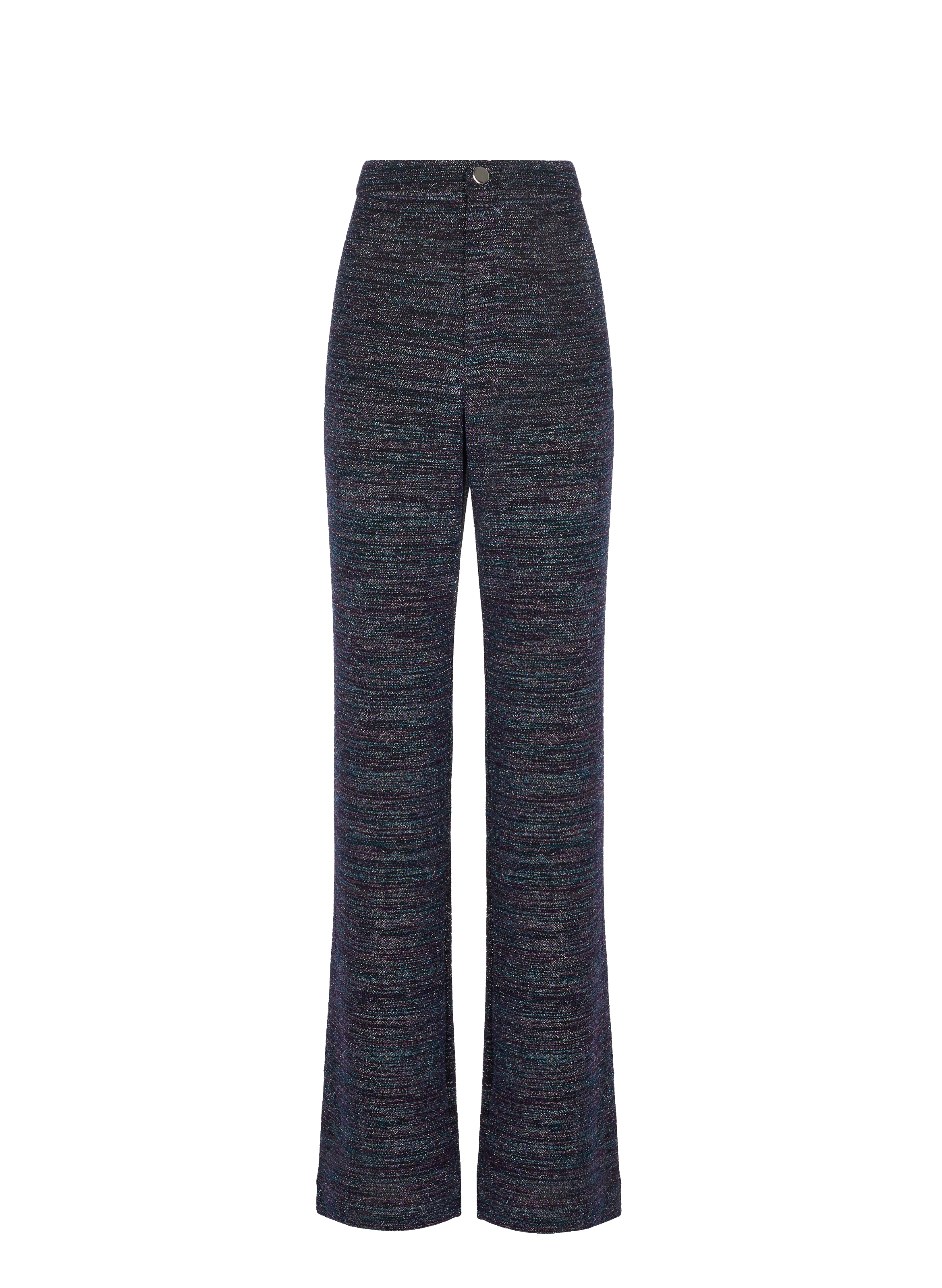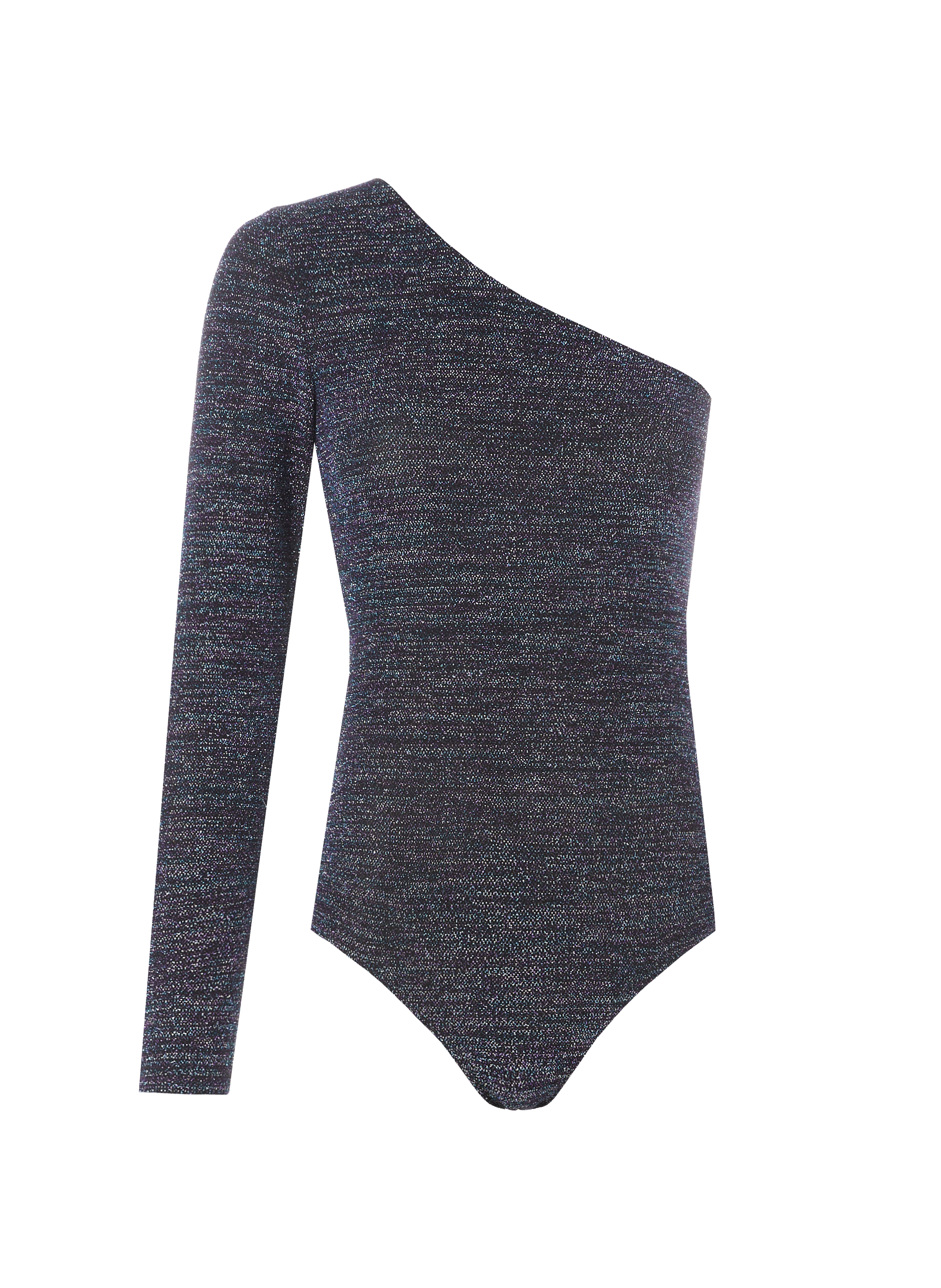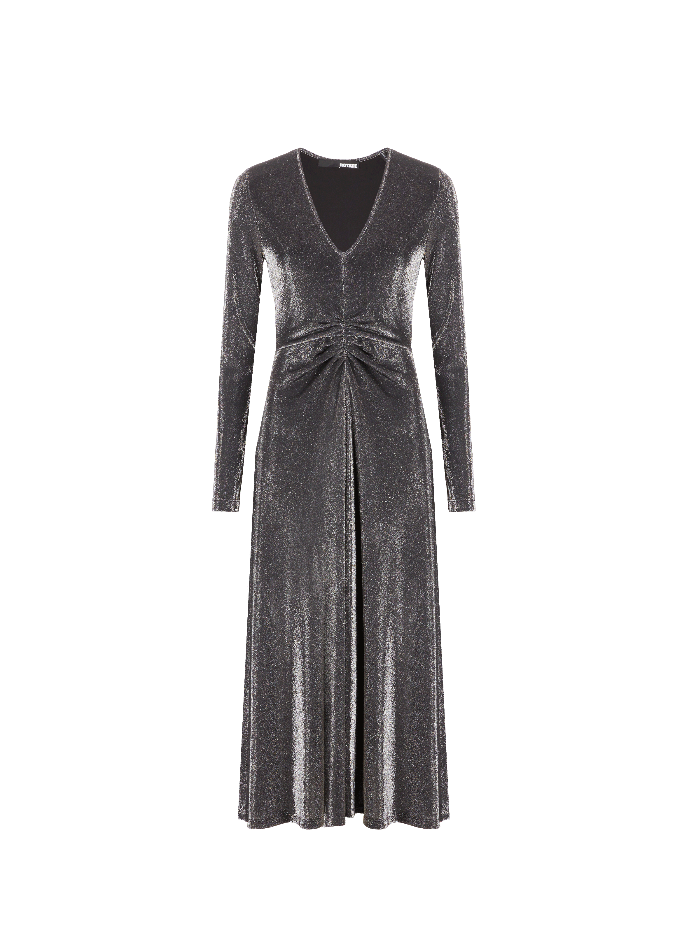 Pour un effet plus subtil, c'est pour une maille plus fine qui tend vers le lurex qu'il faut opter : en robe longue comme vu chez Ester Manas ou en coordonné top asymétrique et pantalon signé Roseanna.