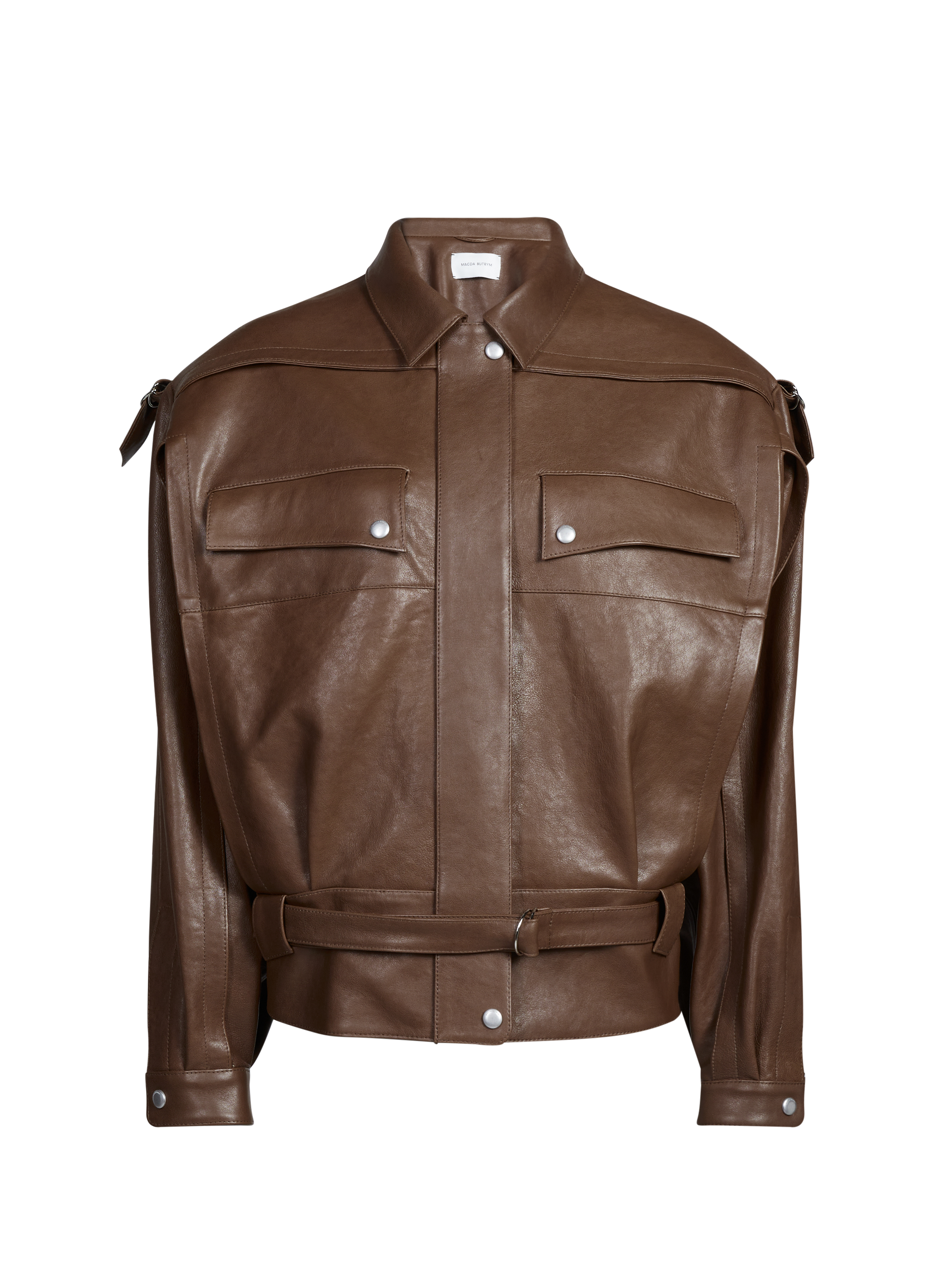 MAGDA BUTRYM Oversized belted leather jacket Beige