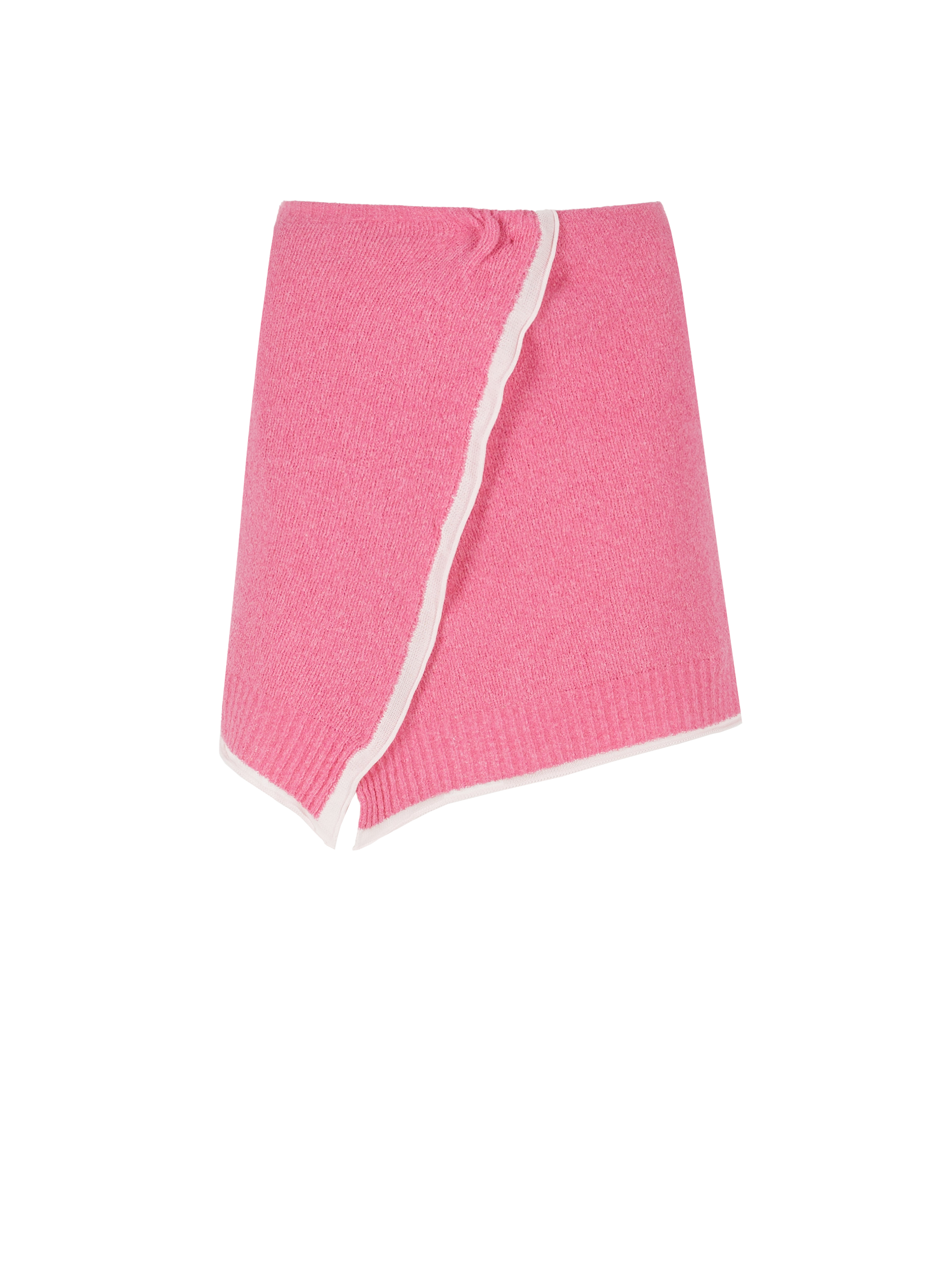 Si chez Valentino la matière quasiment feutrée est aussi importante que la couleur, Jacquemus n'est pas en reste. Pour le créateur sudiste chouchou, le rose se décline de façon duveteuse avec, notamment, un joli panel de mailles rose bonbon.