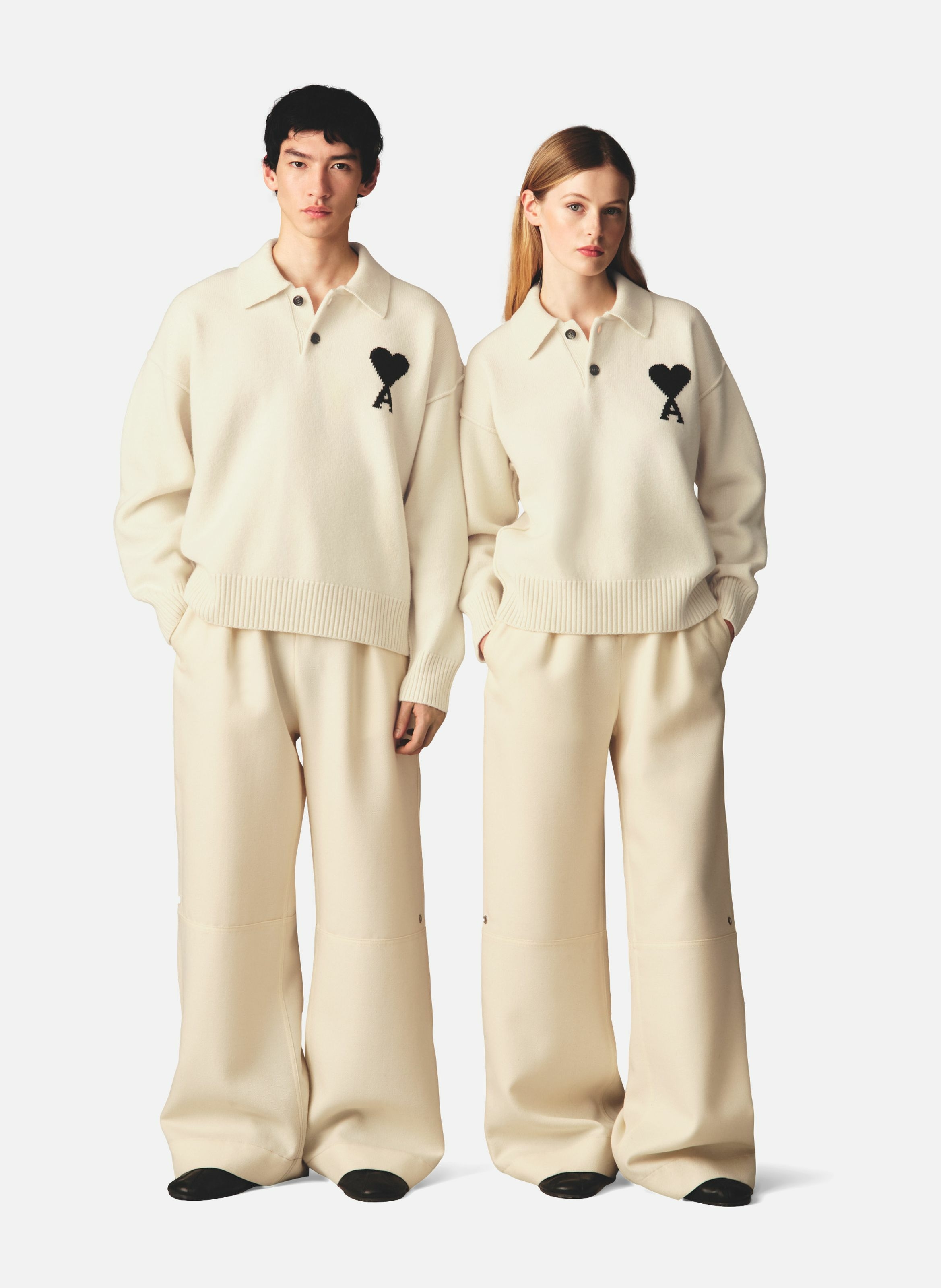 AMI PARIS Polo ami de coeur en laine unisexe Blanc