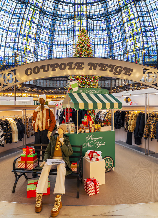 Et pour les amateurs de pièces purement hivernale, direction le 6ème étage du Printemps de la Femme, sous la splendide coupole Wybo, joyau Art Déco des années 1920. Cette saison, l’esprit du Noël à New York s’y installe dans une ambiance enneigée et festive.