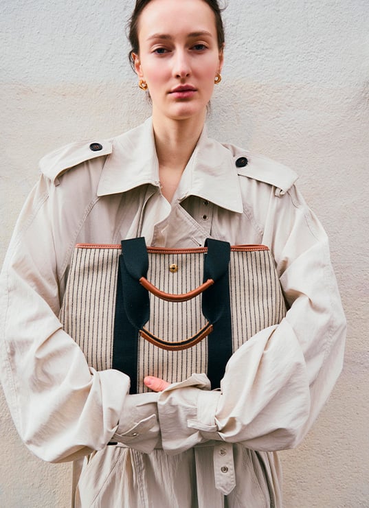 Ses cabas en toile épaisse, soulignés de cuir, incarnent une forme de luxe discret : fonctionnels, résistants, mais toujours empreints d’allure. Les rayures graphiques et les palettes naturelles apportent ce supplément de style, subtil et immédiatement reconnaissable.
