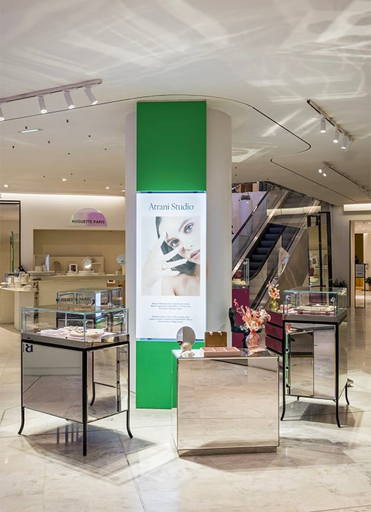 Où trouver Morgan Lou, Atrani Studio, Violaine Muras et In Cauda Venenum au Printemps : en exclusivité, au rez-de-chaussée et à l’étage -1 du Printemps de la Femme.