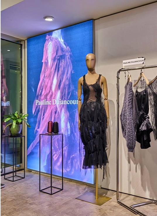 Où trouver Pauline Dujancourt au Printemps : en exclusivité à l’Endroit, au 2ème étage du Printemps de la Femme.