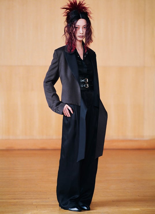 Pour l’Automne-Hiver 2025, la créatrice célèbre ses racines polonaises avec la collection Magdalena. Elle y explore les textures tissées, les superpositions audacieuses et une palette profonde et chaleureuse, où le rouge emblématique de la marque côtoie des tons naturels. Une saison qui réaffirme l’essence de Magda Butrym : la force du féminin, entre douceur et caractère.