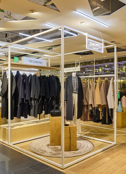 Où trouver The Curated au Printemps : au niveau de l'espace Minimal Chic au 4ème étage du Printemps de la Femme.