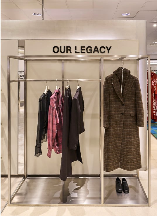 OUR LEGACY Installe leur premier corner femme au monde en exclusivité au Printemps Haussmann avec des espaces personnalisés. La marque suédoise, célèbre pour son esthétique épurée et son regard avant-gardiste sur le vestiaire contemporain, séduit par son élégance brute et son minimalisme affirmé.