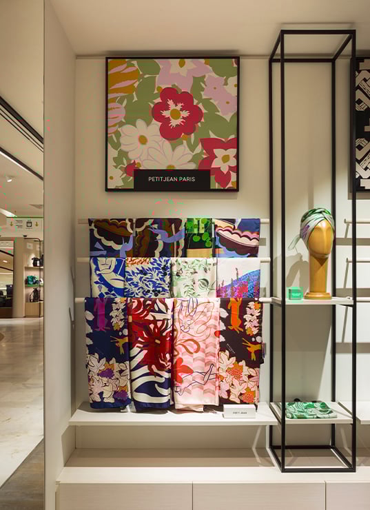 Où trouver Petitjean Paris au Printemps : en exclusivité au niveau -1 du Printemps de la Femme et sur printemps.com.