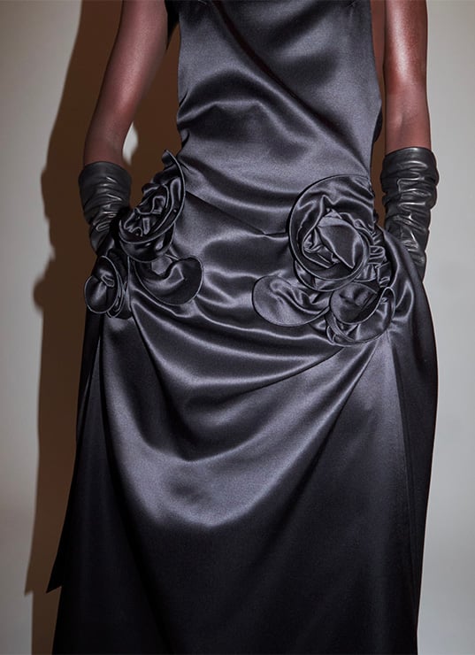 Magda Butrym signe une mode où la féminité se fait audacieuse et sensuelle, portée par des pièces devenues iconiques : robes drapées, fleurs 3D sculptées, blazers structurés et mailles artisanales. Chaque création mêle romantisme et modernité, reflet du savoir-faire unique de la maison.