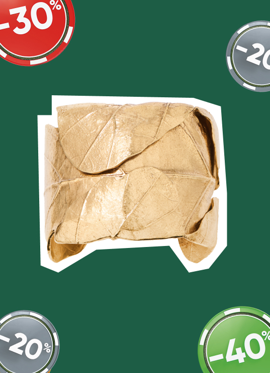 Cette saison, la tendance est aux bijoux imposants. AURELIE BIDERMANN signe la manchette Ledena en laiton doré, au design contemporain inspiré de feuilles de figuier. Élégant et intemporel, ce bracelet rigide sublime vos tenues du matin jusqu’au soir.