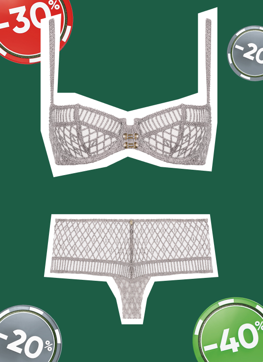 AUBADE est une maison de lingerie raffinée, réputée pour ses créations sensuelles et élégantes qui subliment la féminité avec audace et sophistication. Ce soutien-gorge et ce shorty incarnent à merveille l’esthétique féminine de la maison française. Entièrement rehaussés de strass, ces pièces – proposées séparément – se portent seules ou en duo, glissées sous une robe transparente pour une allure de soirée spectaculaire.