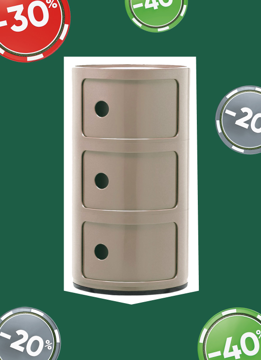 Imaginée par la griffe Kartell, le Componibili est un petit meuble de rangement cylindrique, modulable et empilable. Icône du design italien, il associe lignes épurées et fonctionnalité, offrant une solution élégante et intemporelle pour organiser et sublimer chaque espace.