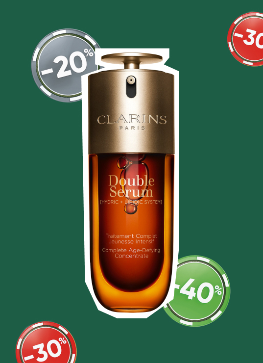 Véritable allié de votre routine beauté, le Double Sérum de chez CLARINS n’est plus à présenter. Profitez de l’opération Jackpot pour acquérir ce soin anti-âge intensif qui combine deux phases, hydrique et lipidique, pour cibler tous les signes visibles de l'âge. Enrichi en 22 extraits de plantes, il stimule les fonctions vitales de la peau, l'hydrate, la nourrit et la régénère, offrant ainsi un teint plus ferme, lisse et éclatant. L’essayer, c’est l’adopter.