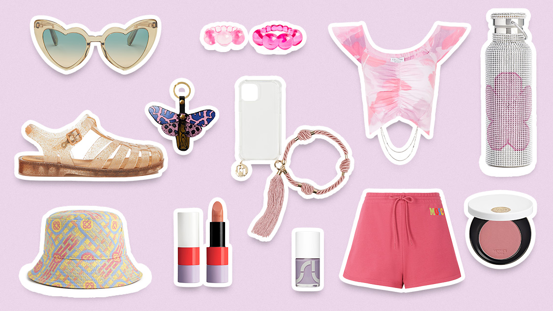 Vernis à ongles Violet ITA, 19€ - Uslu Airlines / Coque Simon Frullato pour iPhone12, 135€ - Rosantica / Bouteille à strass en acier, 90€ - Collina Strada / Rose Hermès, fard à joues Silky Blush, Rose Nuit, 68€ - Hermès / Porte-clés Papillon en cuir, 12€ - Ark Colour Design / Sandales Possession x Rombaut, 99€ - Melissa / T-shirt Tie and dye en coton, 255€ - Collina Strada / Lunettes de soleil, 325€ - Saint Laurent / Rouge Hermès, rouge à lèvres brillant, édition limitée, Beige d'Eau, 69€ - Hermès / Bagues Blossom, 60€ - La Manso / Bob en toile de coton, 220€ - Casablanca Paris / Short en coton molleton, 195€ - Moschino