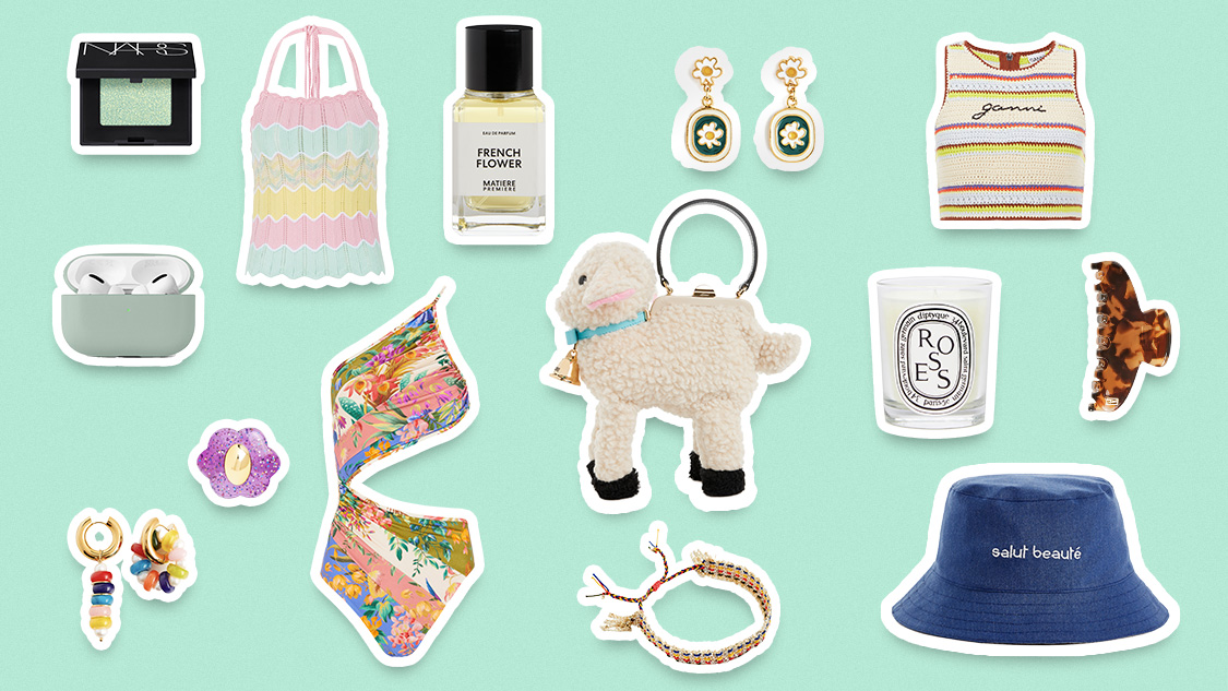 Sac à main mouton, 695€ - Moschino / Top en corchet, 325€ - Moschino / Bague Flower on Mars, 60€ - La Manso / Bracelet N 364, 210€ - Marie Laure Chamorel / Bob réversible, 79€ - Salut Beauté / Boucles d'oreille Chamomile, 225€ - 10 Deco Art / Boucles d'oreille dépareillées, 295€ - Timeless Pearly / Bougie, 54€ - Diptyque / Pince à cheveux, 70€ - Alexandre de Paris / Etui AirPods Pro en cuir, 40€ - Native Union / Fard à paupières Single Eyeshadow Hardwired, 22€ - Nars / Eau de parfum, à partir de 30€ - Matière Première / Haut de maillot de bain crocheté en coton organique, 145€ - Ganni / Maillot une pièce Tropicana Spliced, 325€ - Zimmermann