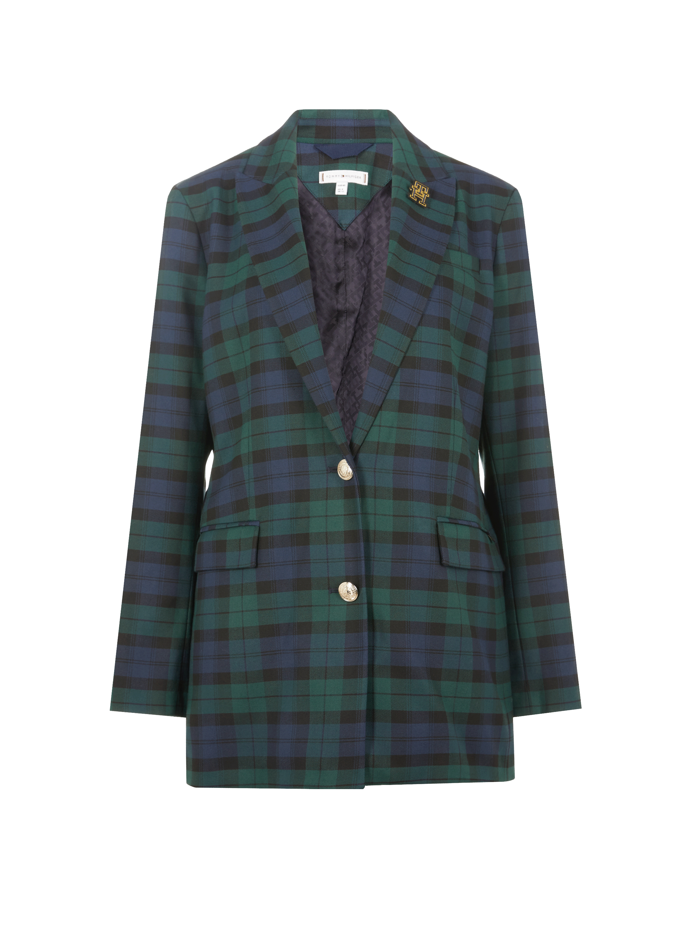 Veste à carreaux, 299,90€ - Tommy Hilfiger / Chemise cintrée, 99,90€ - Tommy Hilfiger / Sac Cabas imprimé tartan, 169,90€ - Tommy Hilfiger / Jean Murray Blanc, 490€ - Tibi / Baskets en cuir et coton, 570€ - Jil Sander / Chaise rembourrée bold, 482€ - Moustache chez Made in Design