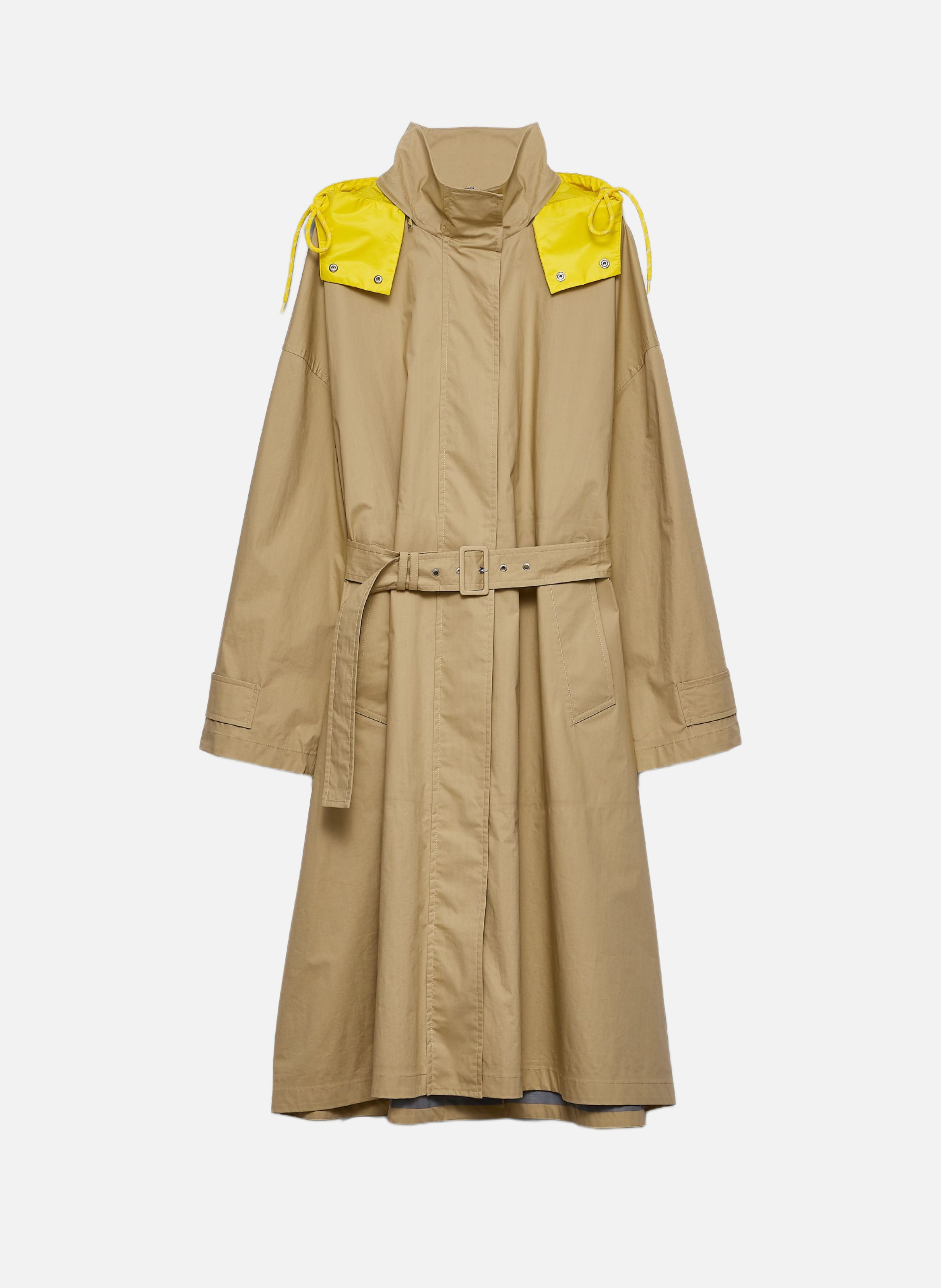 Propulsé au rang d’icône par la maison Burberry, le célèbre trench-coat en gabardine dont la formule, couleur beige, double boutonnage, doublure en tartan et bavolet, perdure depuis plus d’un siècle. Aujourd’hui confectionné dans la manufacture Burberry de Castleford dans le Yorkshire, le trench-coat était à l’origine un vêtement militaire.