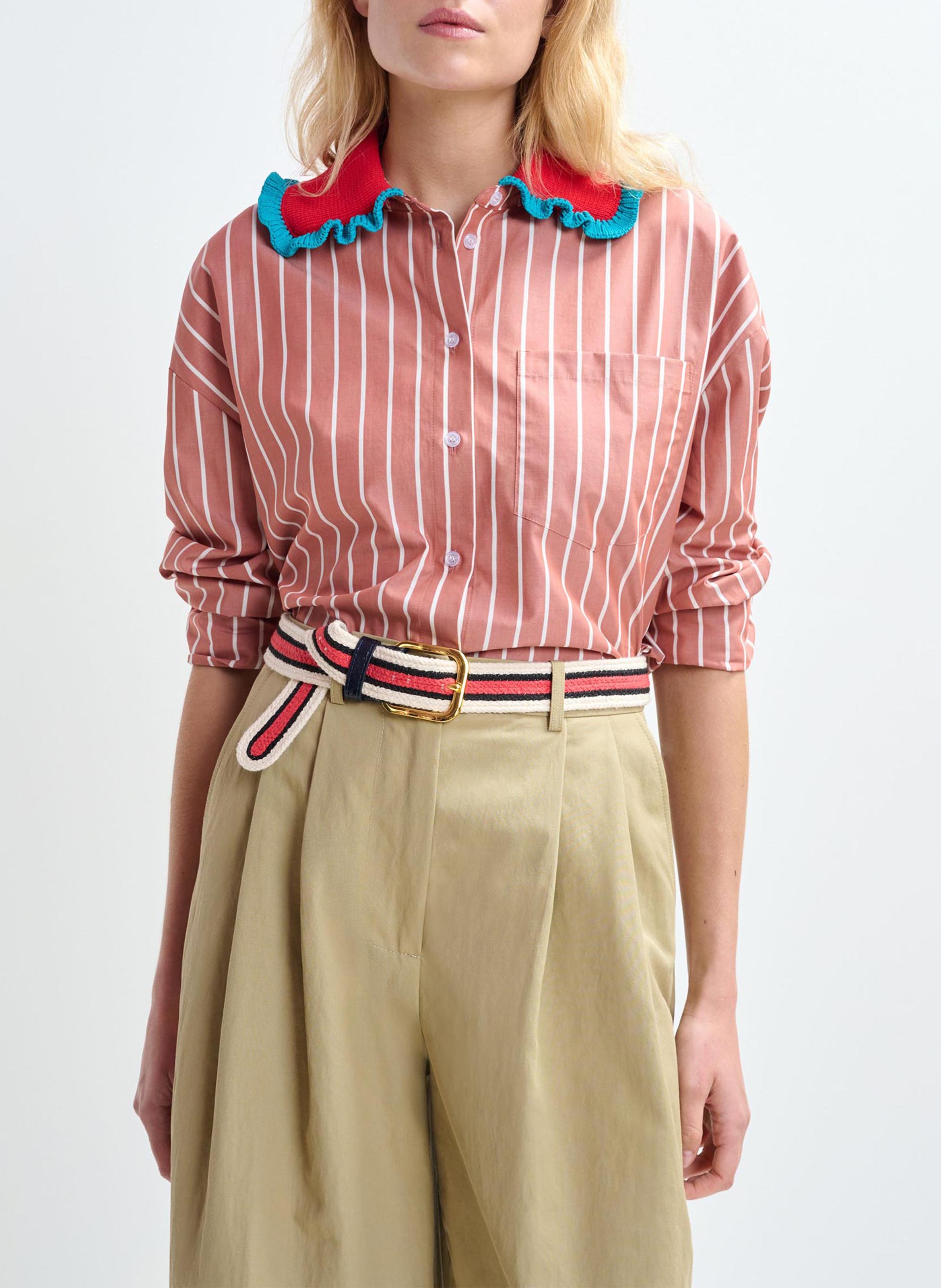 essentiel antwerp Chemise oversize col classique en coton rayé joyful | Orange