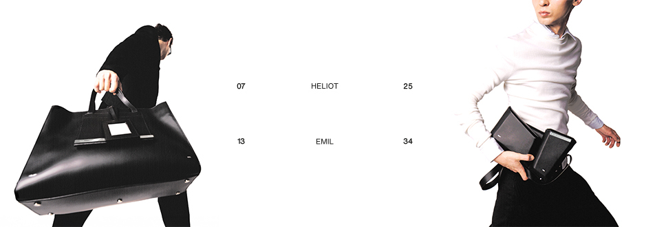 HELIOT EMIL explore la frontière entre forme et fonctionnalité, guidée par des approches expérimentales. Une esthétique scandinave subversive et monochrome, portée par des matières et tissus exclusifs, qui reflètent le sens du détail absolu de la marque.