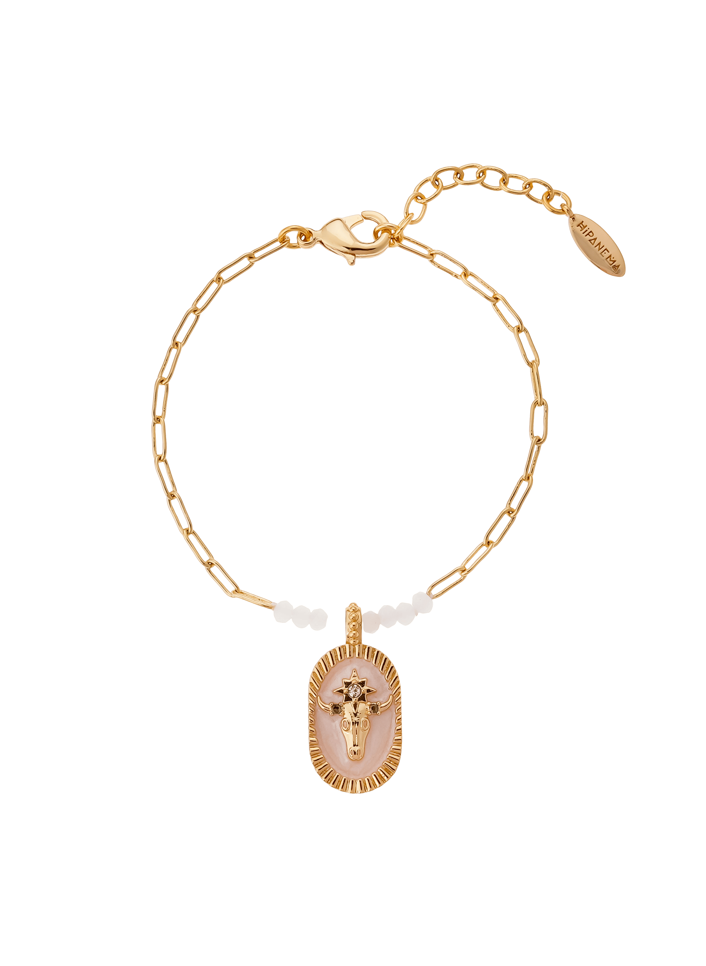 • Bracelet chaine et fermoir en laiton doré à l'or fin 14 carats 0,06 microns • Émail • Fils de polyester • Entièrement fait à la main. • Ne pas mettre en contact avec l'eau. • Garanti sans nickel et sans risque d'allergie. • Longueur du bracelet : 15,5 cm +/- 0,5 mm avec chaîne d'extension de 3 cm. • Se décline en deux couleurs. • Livré dans un pochon Hipanema (pour avoir des boîtes cadeaux supplémentaires, n'oubliez pas de les ajouter à votre panier).