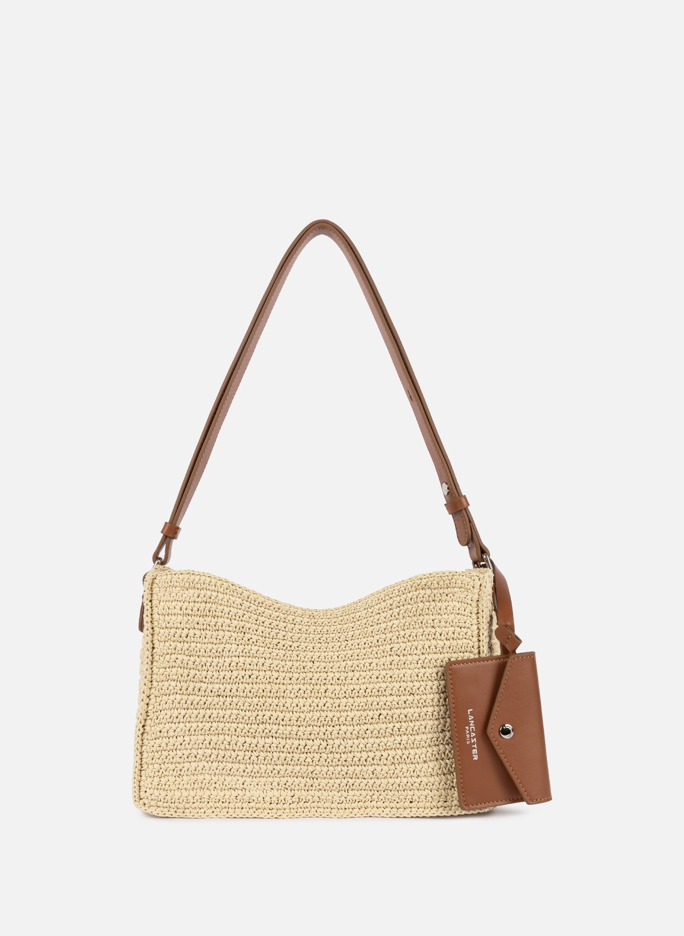 Ce sac besace est confectionné de paille naturelle garni de cuir de vachette. Il possède deux compartiments simples, deux poches intérieures zippées ainsi qu'un porte cartes à pression amovible. Il se porte croisé ou à l'épaule.