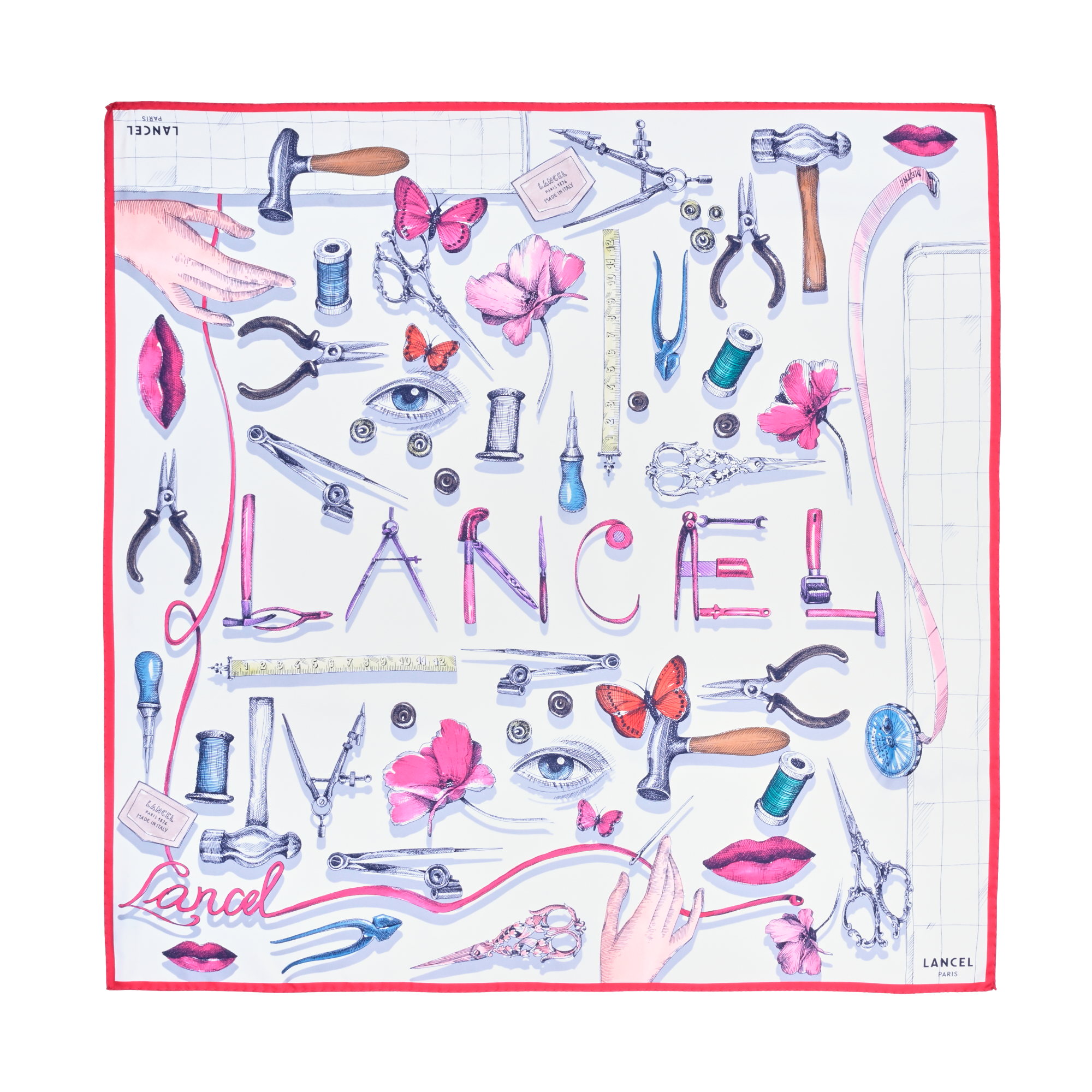- Carré de soie 90 motif savoir-faire en soie - multicolore