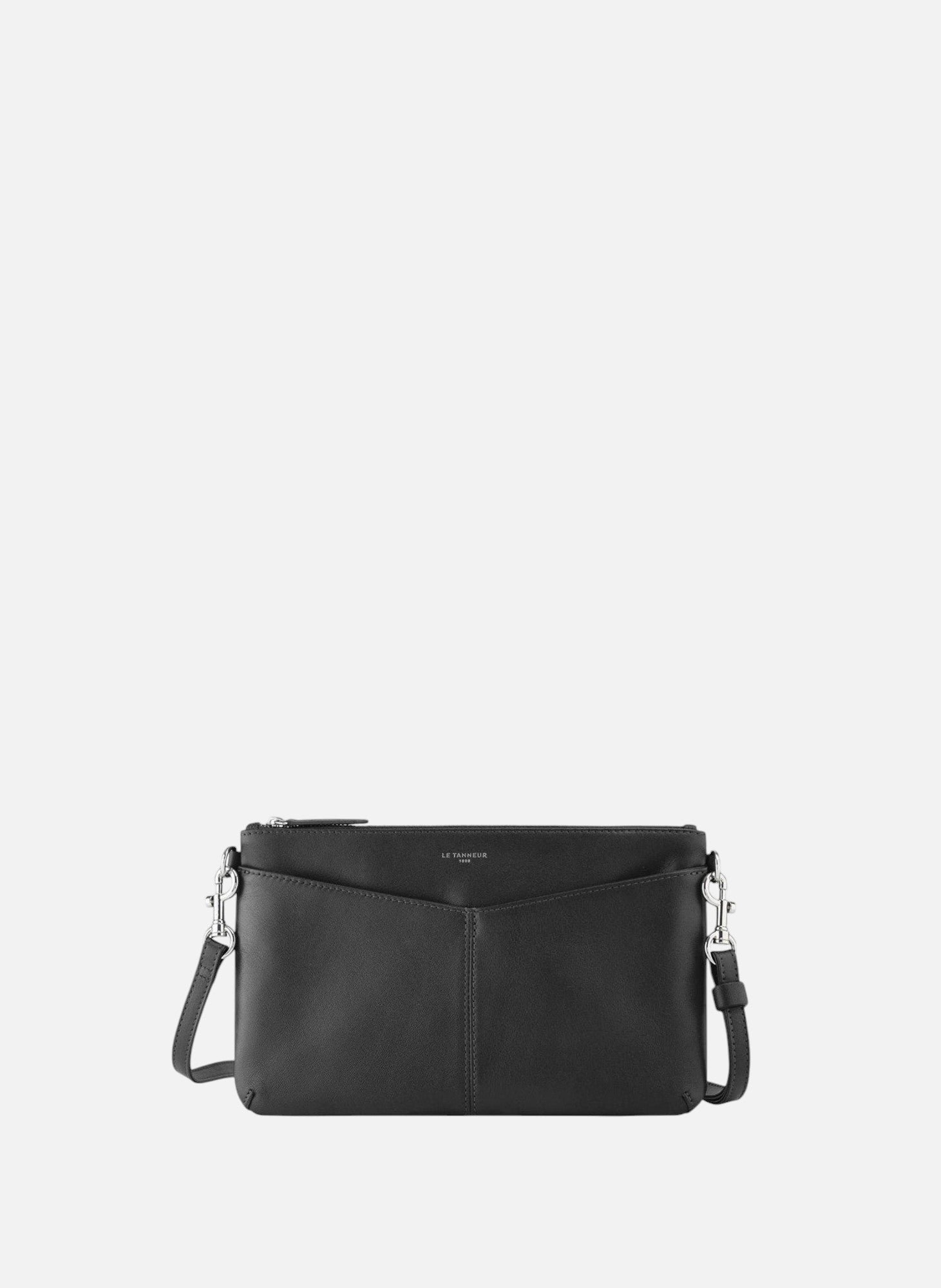 LE TANNEUR Sac pochette zippée avec bandoulière amovible charlotte en cuir lisse Noir
