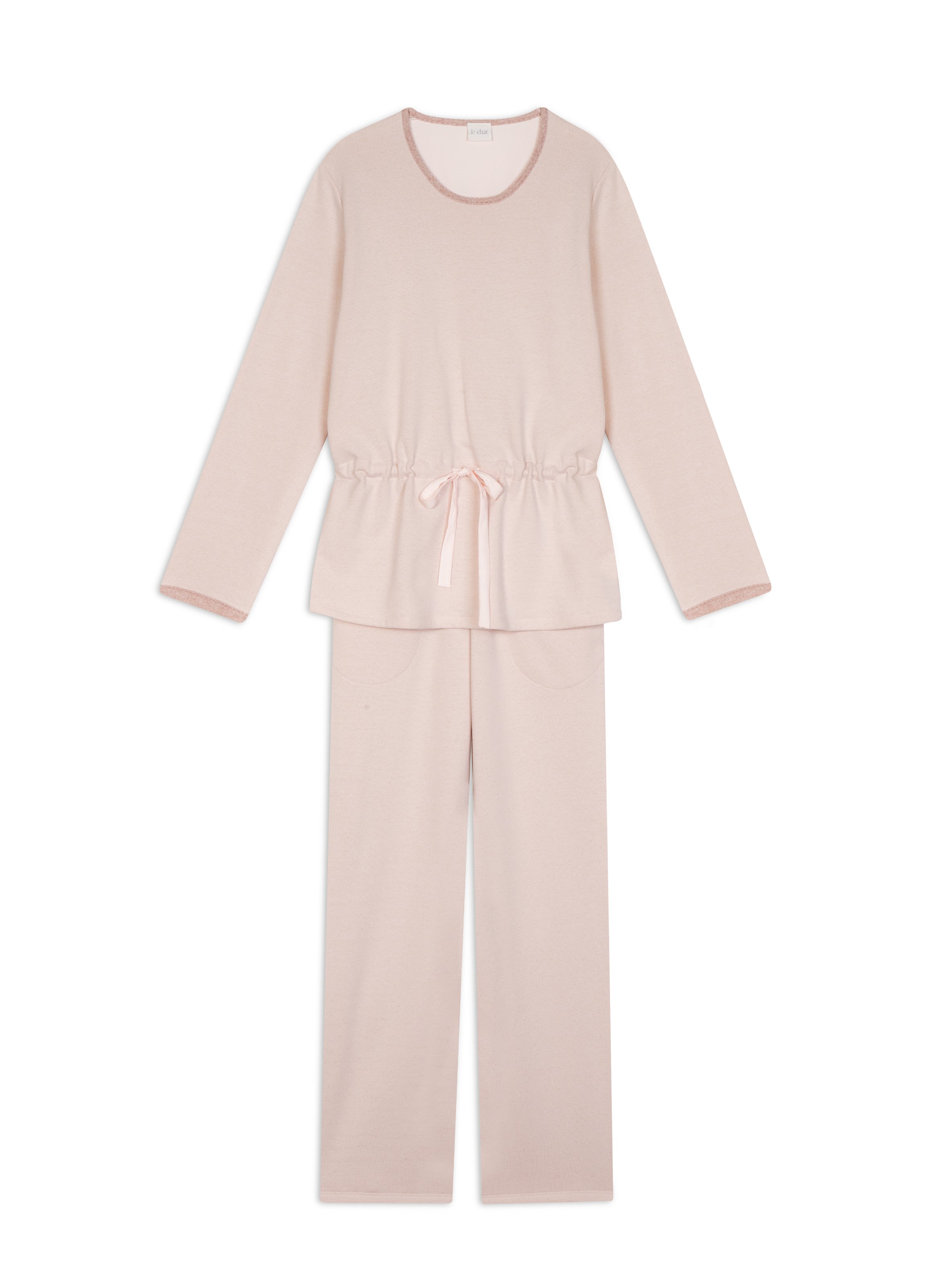 Tenue parfaite pour voyager ou cocooner, deux coloris sont disponibles : marine profond ou rose poudré, tous deux rehaussés de fils Lurex® à l’effet pailleté.