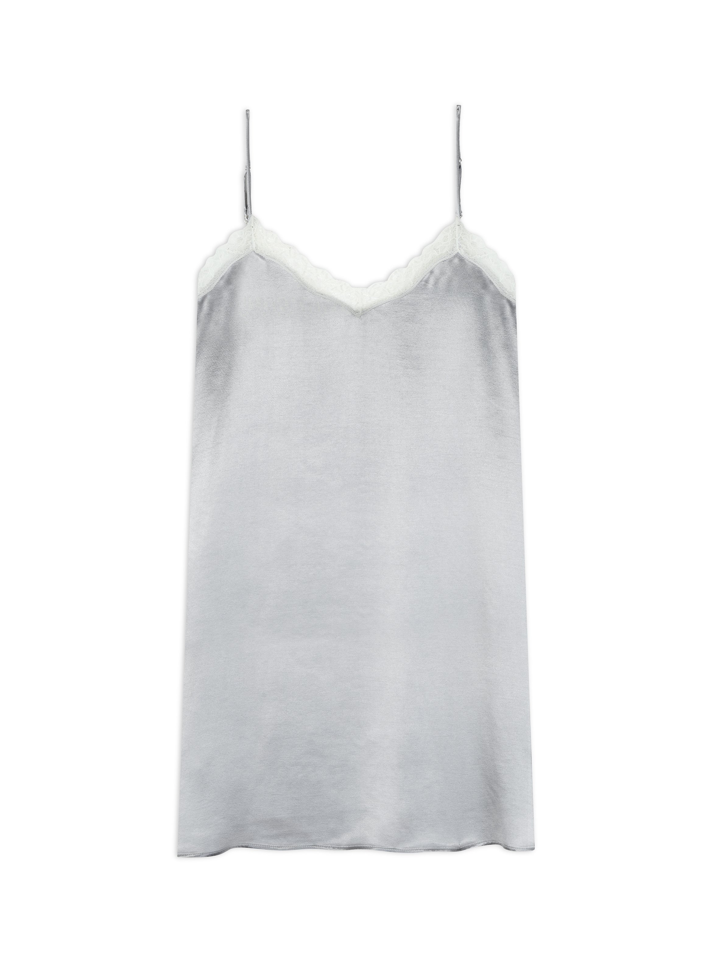 - Encolure V devant et dos animée par un demi galon de dentelle contrasté 100% Made in France.