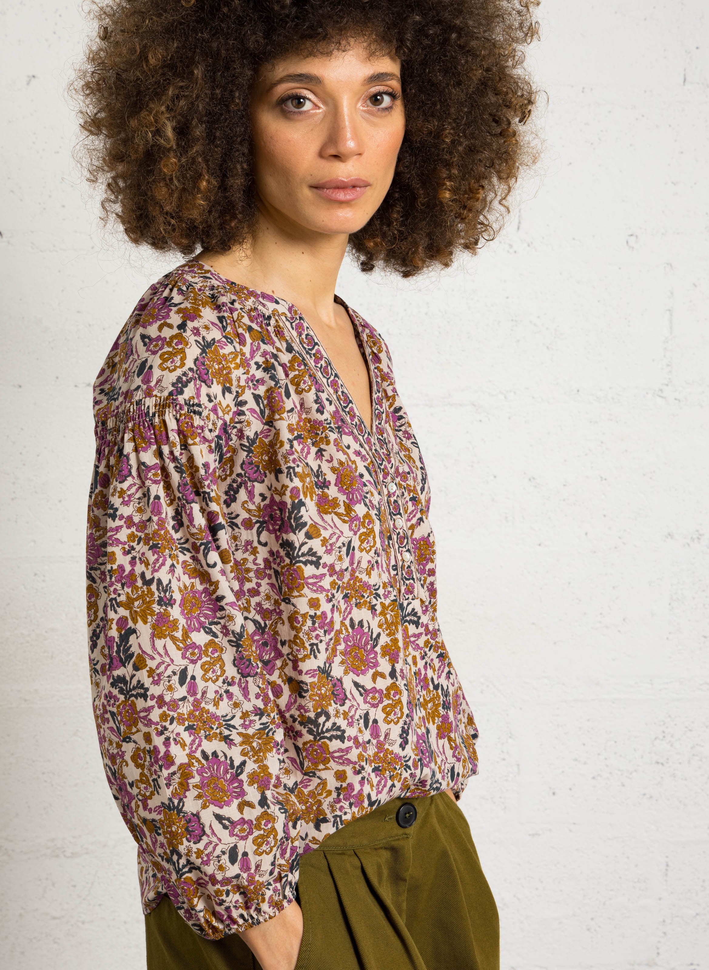 Top droit col tunisien en coton prune by MAISON 123 pour Femme.