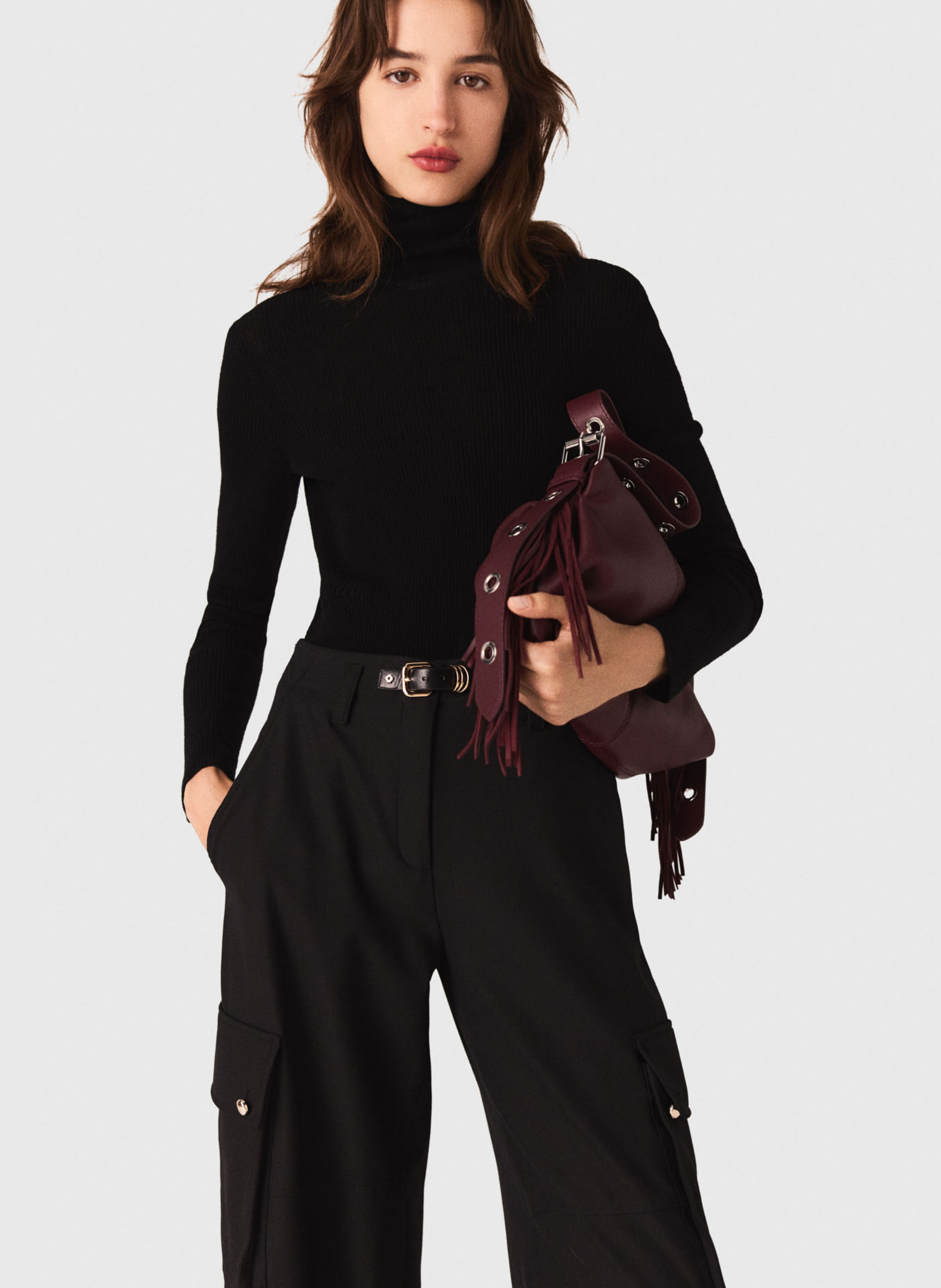 MAJE Pull col montant en laine mélangée Noir