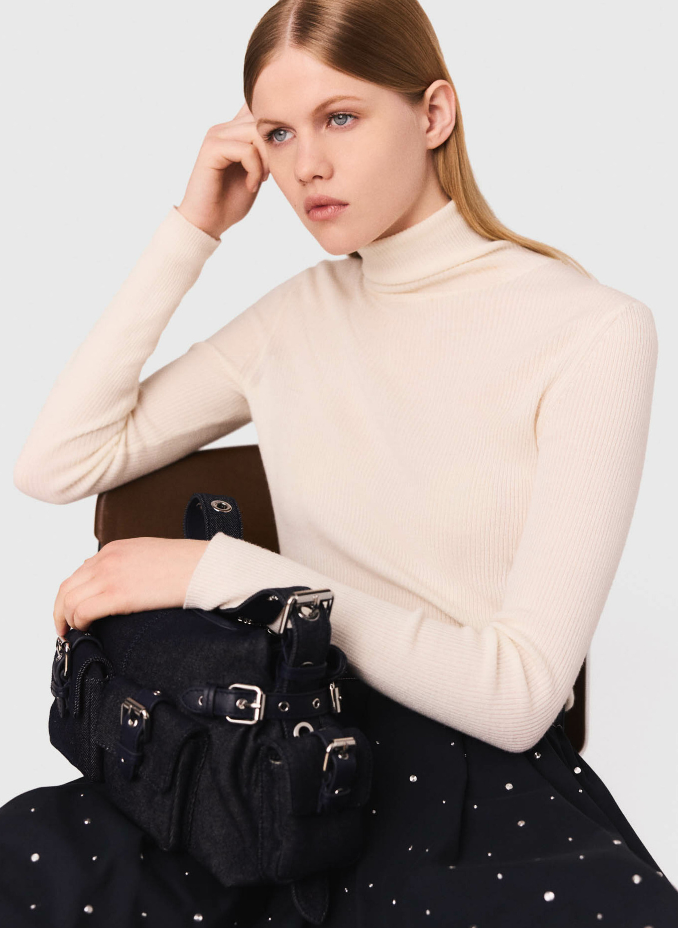 MAJE Pull col roulé en laine et en soie mélangés Beige