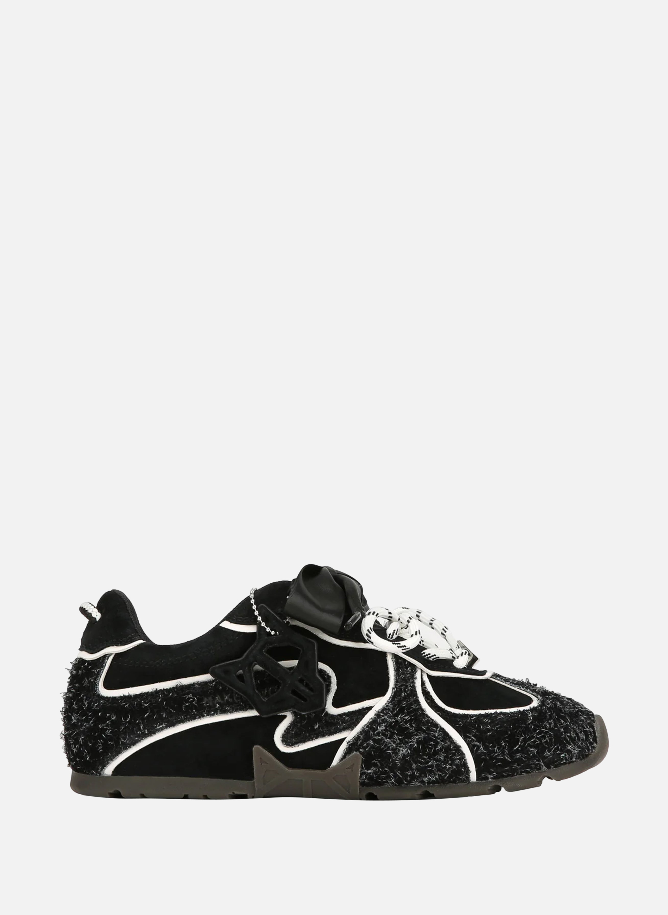 Sneaker Adored Black Suede, design avancé et performance élevée. Lacets doubles ruban et plat pour ajustement sécurisé. Tige en daim et cuir, résistante et texturée. Hauteur semelle 15 mm, tige daim et cuir, semelle intérieure douce avec logo, semelle caoutchouc, double lacets ruban et plat coton, logo Wolfe amovible, détail cordon arrière, logo sur languette en cuir. Ce modèle taille légèrement petit, prendre une taille au-dessus si entre deux tailles.