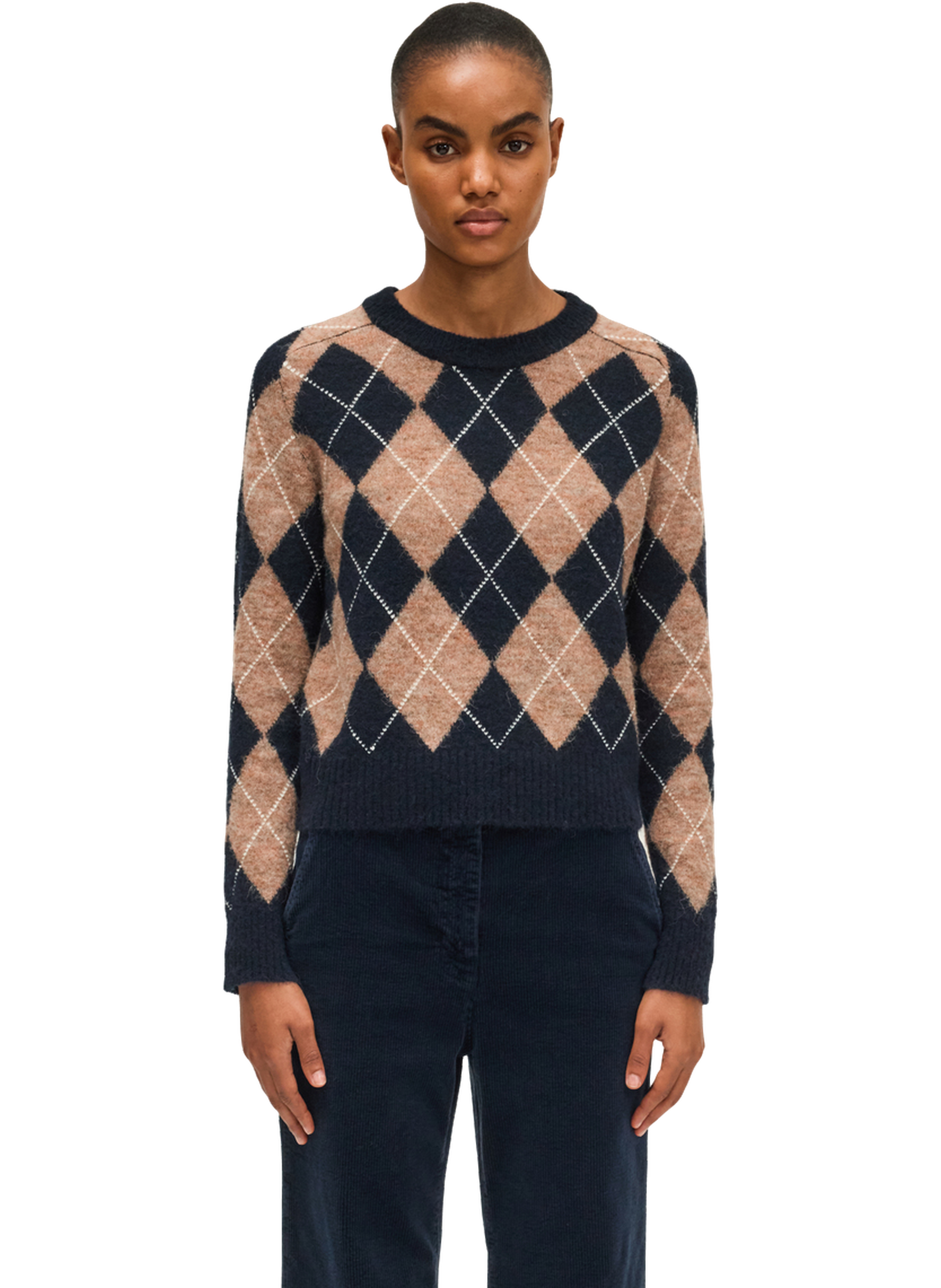 PABLO Pull col rond à losanges contrastés - eleana Bleu