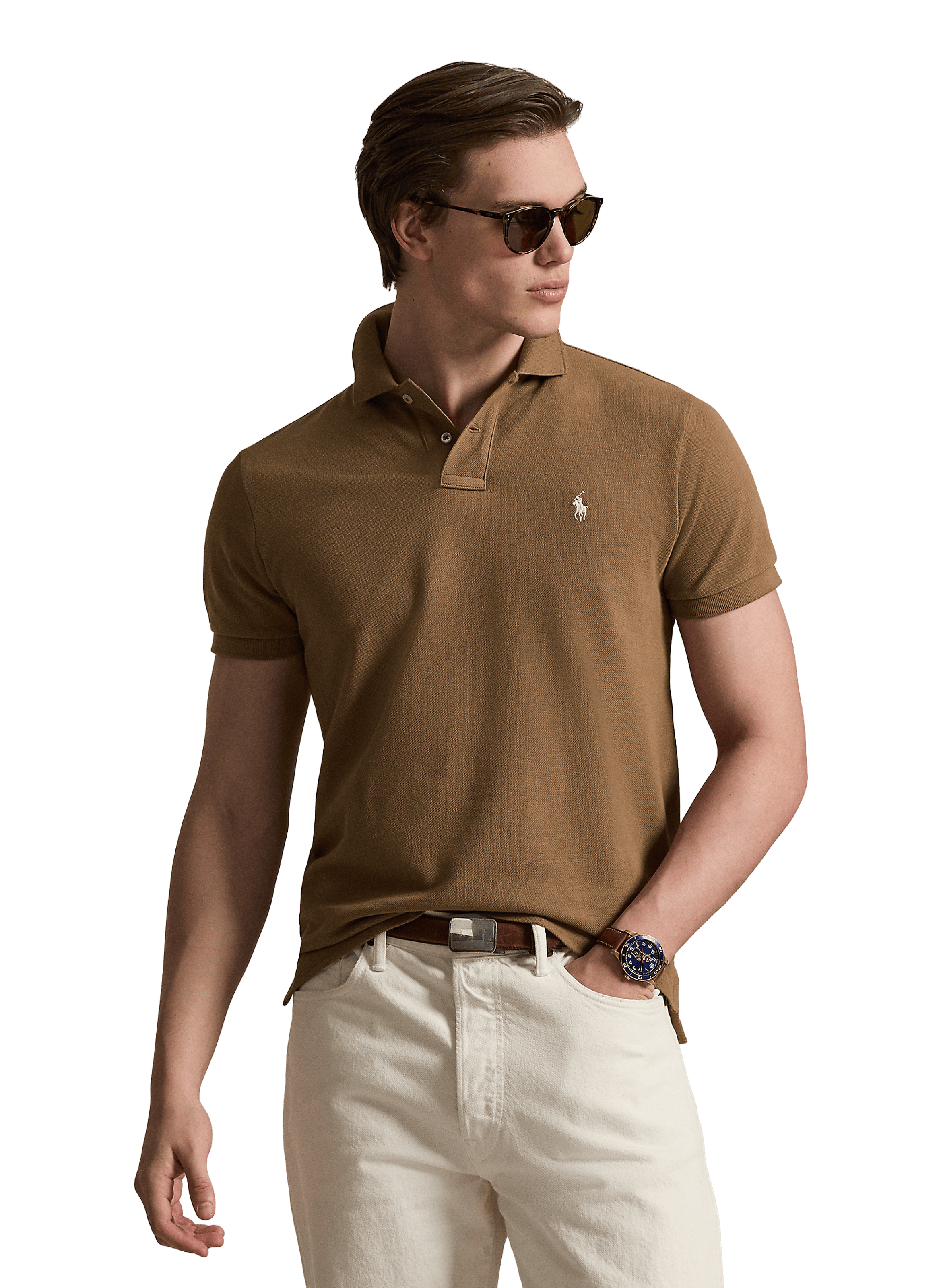 Le polo en coton café de Polo Ralph Lauren est une pièce essentielle de toute garde-robe masculine, alliant confort décontracté et élégance discrète. Confectionné dans un jersey de coton doux, il offre une sensation agréable sur la peau, idéale pour une journée active ou une soirée relaxante. Rehaussé du logo emblématique de la marque, discrètement brodé sur la poitrine, il témoigne d'un souci du détail et d'un héritage de qualité. Sa coupe classique en fait un vêtement facile à porter en toute occasion. Associez-le à un chino et des mocassins pour un look preppy intemporel.