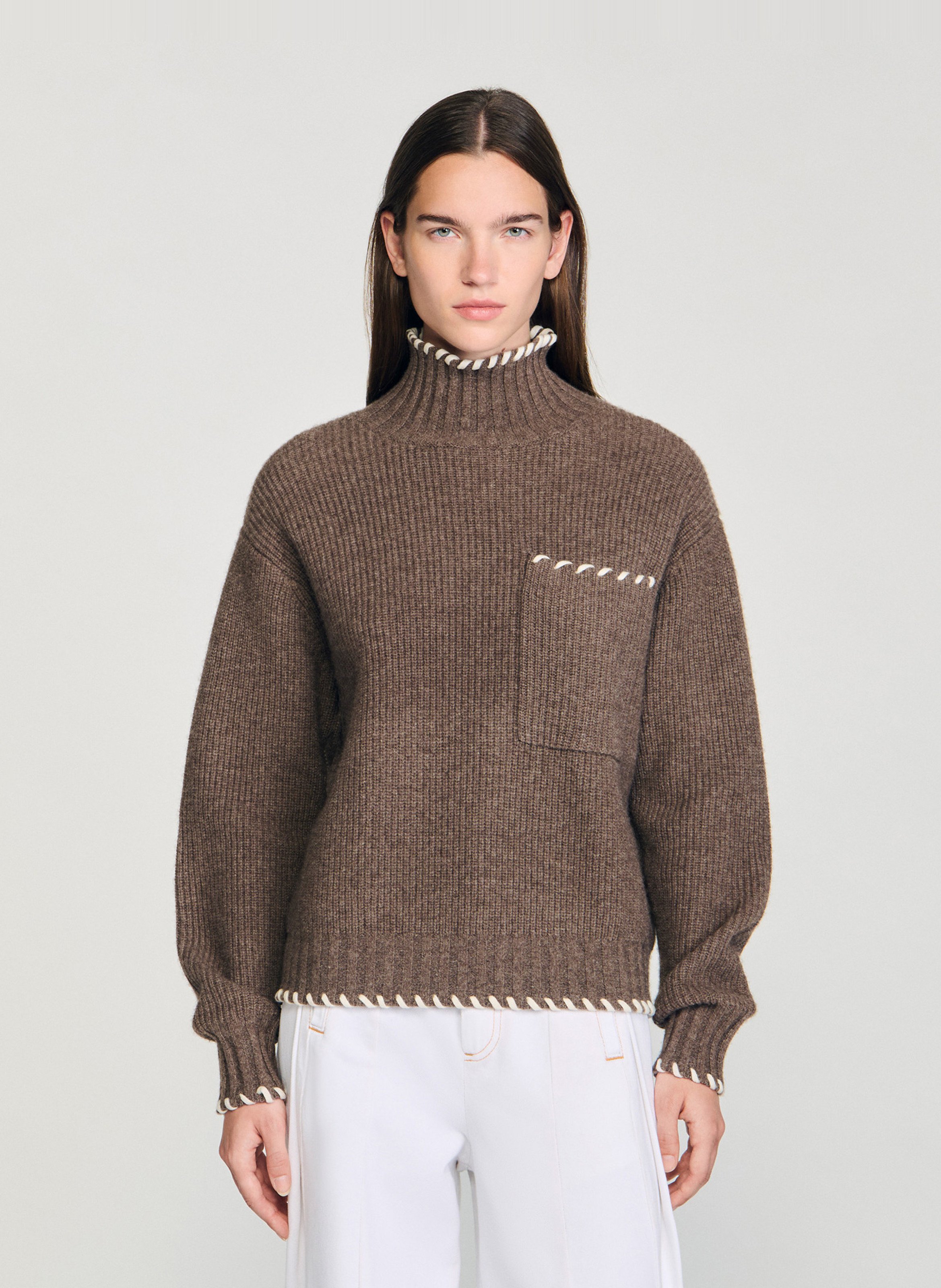 SANDRO Pull col montant ample en laine mélangée Marron