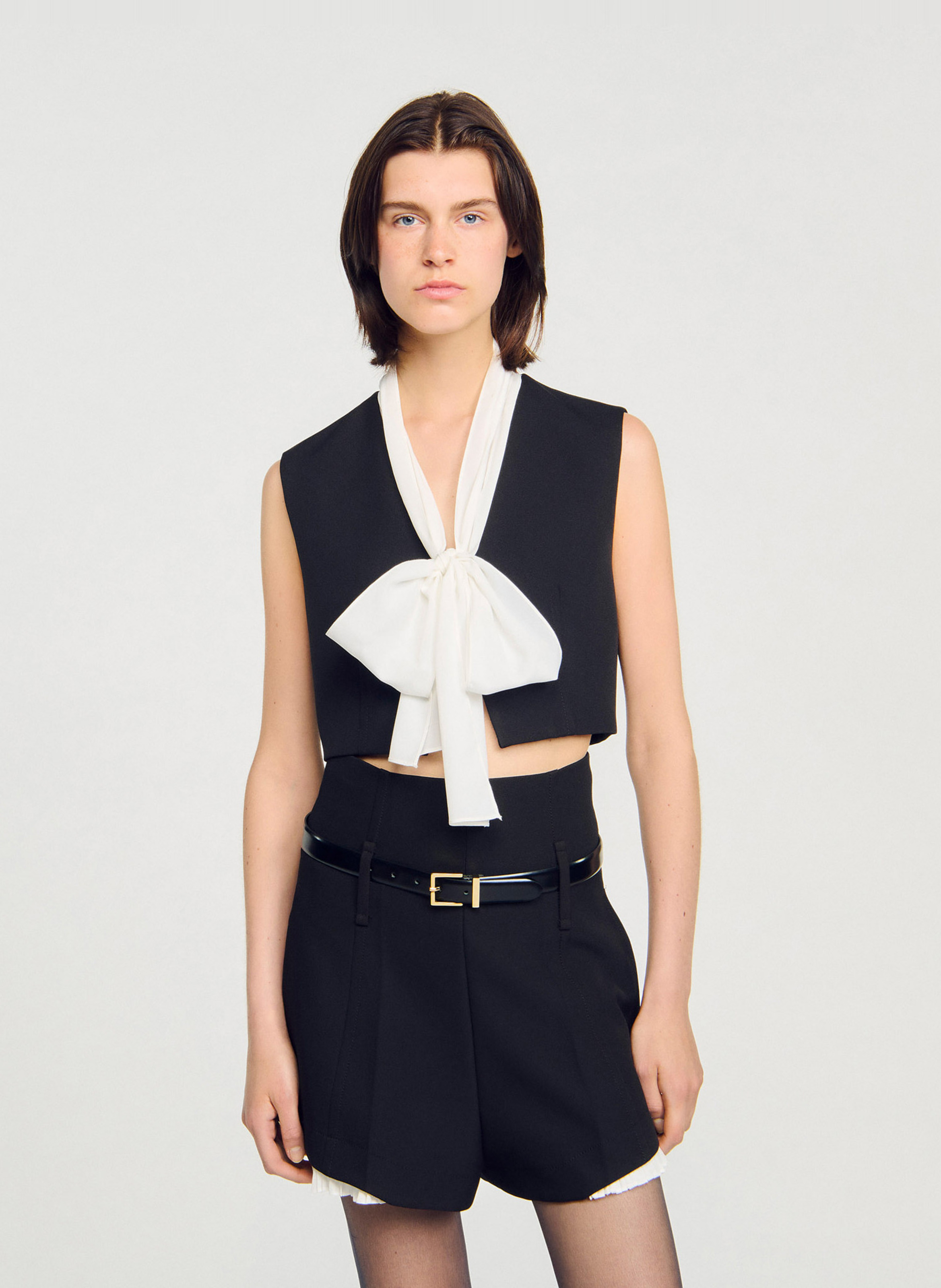 sandro Top court à col lavallière | Noir