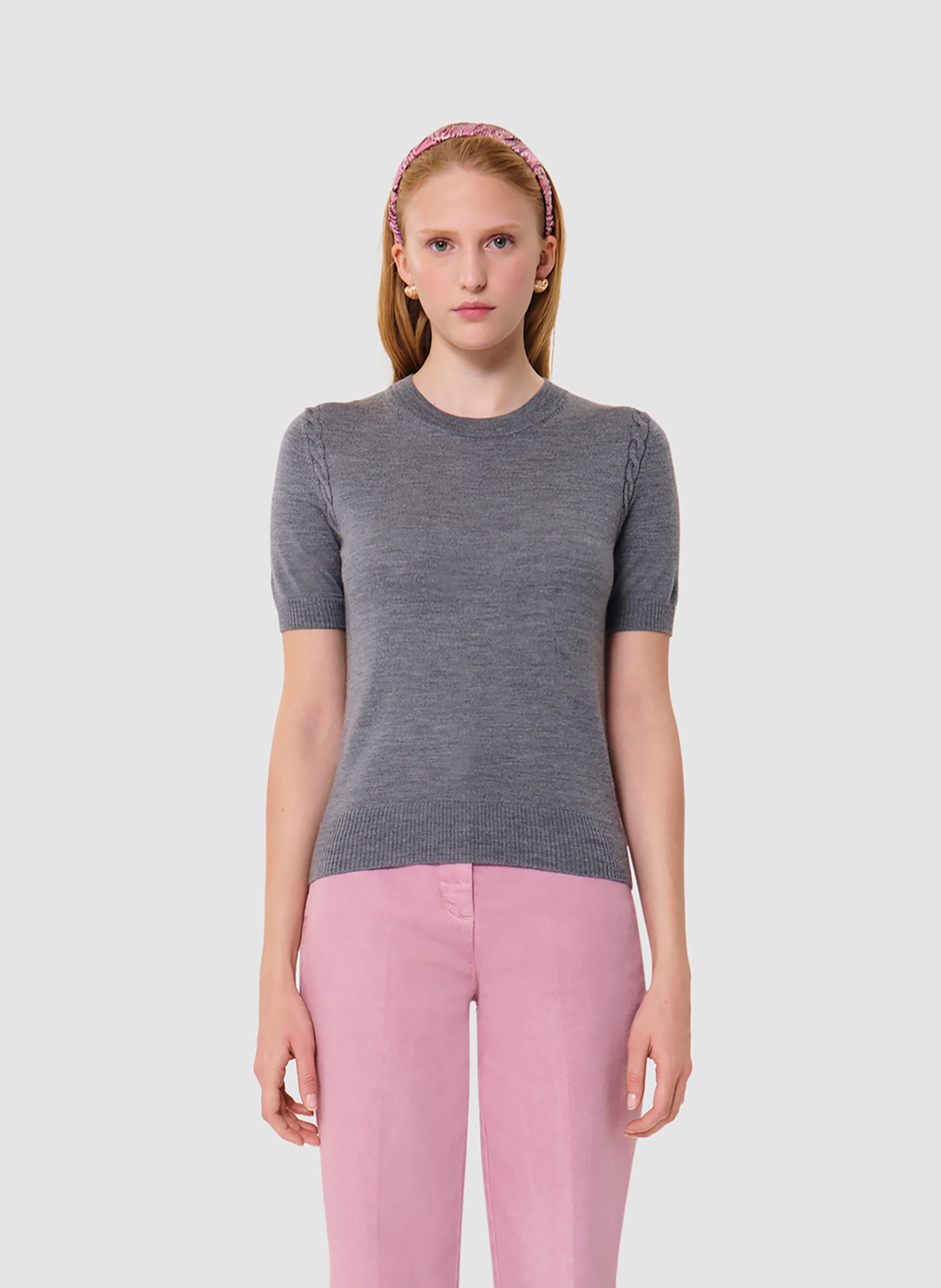 Ce pull fin en laine mérinos possède une encolure ronde et des manches courtes. De délicats détails de maille tressée ton sur ton décorent les emmanchures. On le porte en twinset avec le gilet Ginno assorti. Pour votre information: les frais de retour sont à votre charge, mais on espère que tout sera parfait!