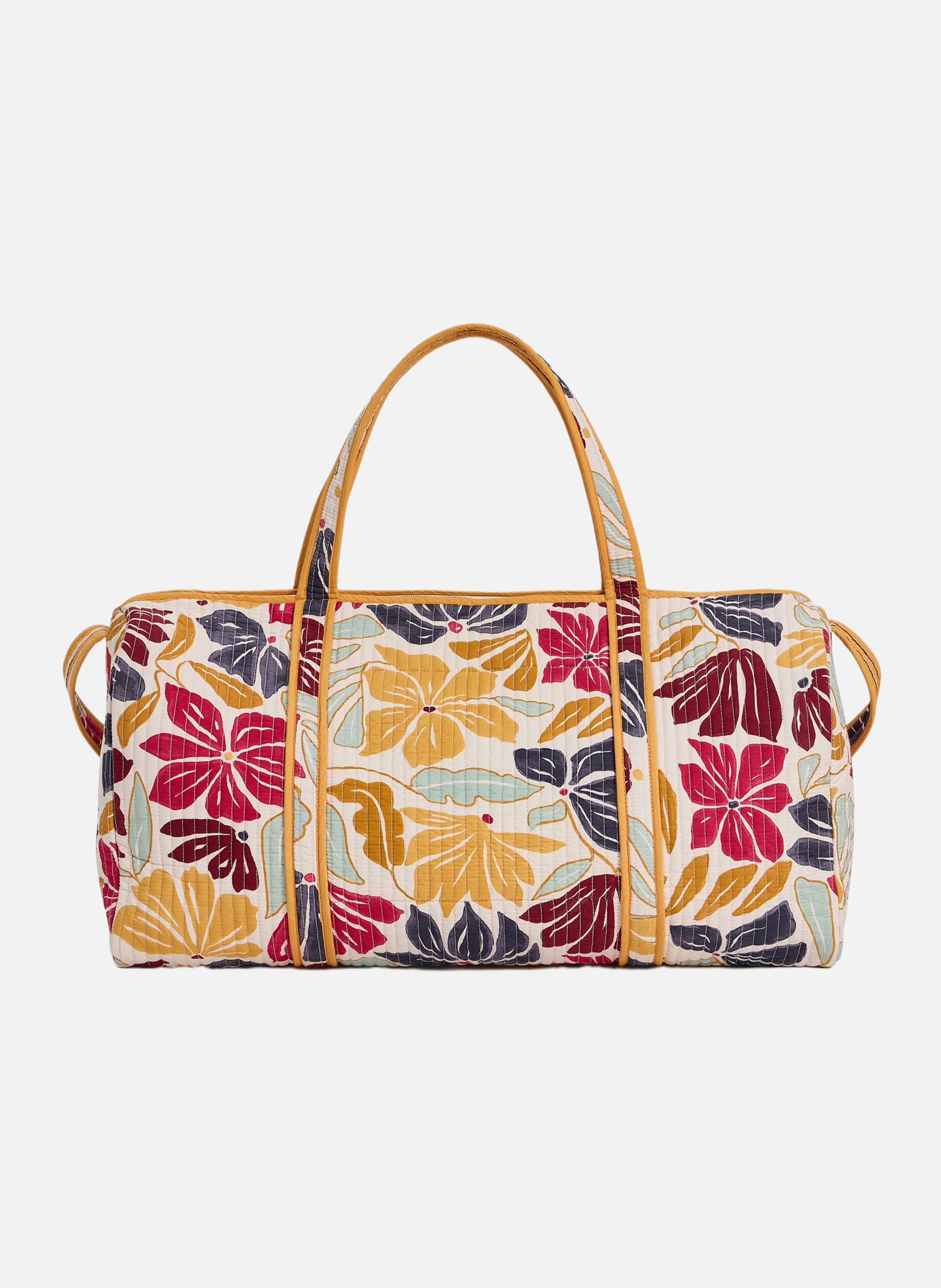 Le sac en coton matelassé séduit par son imprimé floral lumineux et son allure estivale. Spacieux et fonctionnel, il accueille facilement tous vos essentiels, avec une fermeture zippée et une doublure contrastée à rayures. Ses anses permettent un porté épaule confortable, complétées par une bandoulière pour plus de praticité.100% cotonDoublure 100% cotonImprimé floral multicoloreFormat spacieuxFermeture zippéeDouble porté : épaule et bandoulièreDoublure intérieure rayéeSac souple et léger