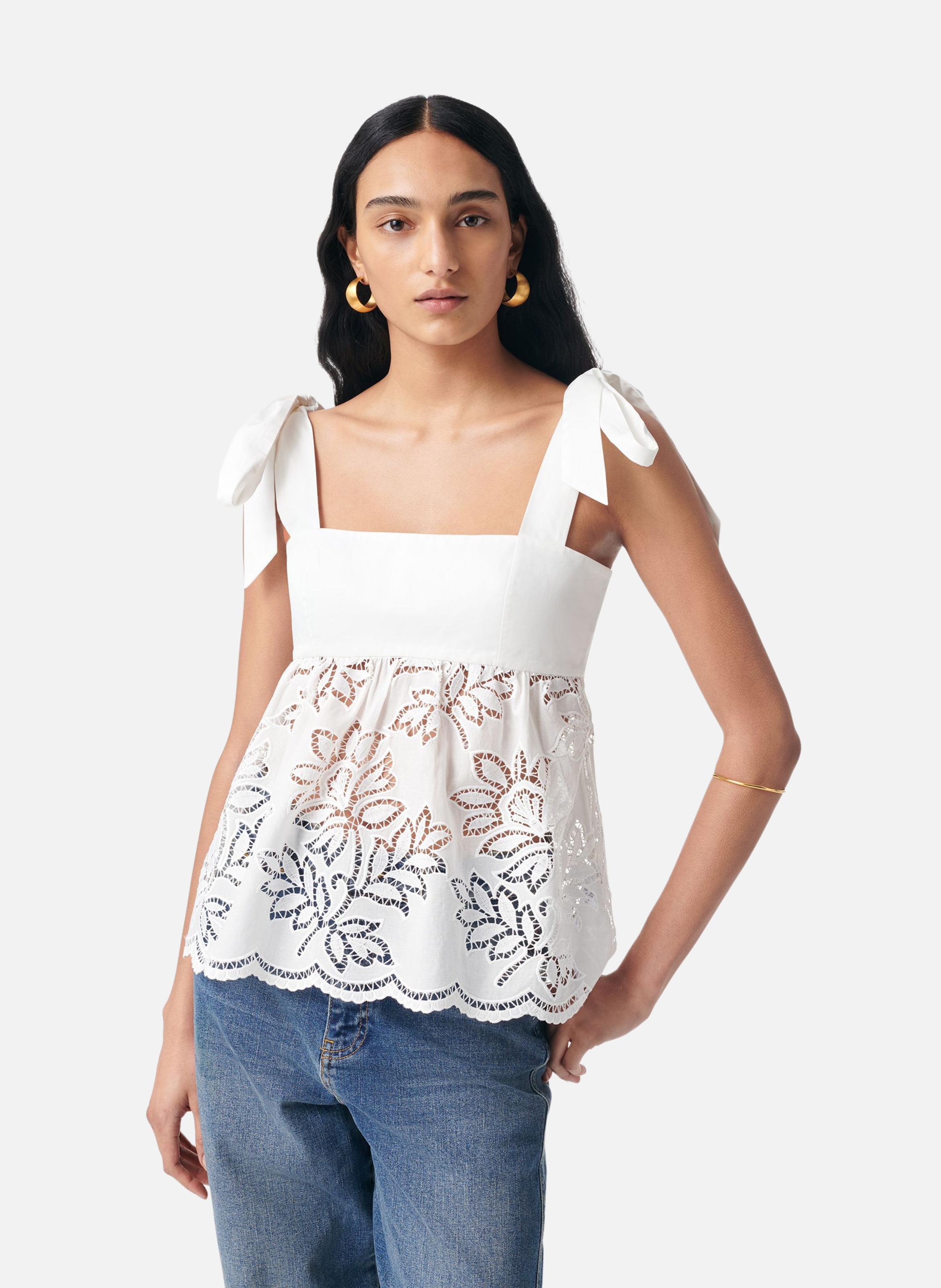 Le top Giovi mise sur l’authenticité d’un coton 100% naturel et le charme de ses broderies délicates. Léger et agréable à porter, il accompagne facilement les journées d’été.Ses détails brodés apportent du relief et une touche artisanale subtile, tout en conservant une silhouette épurée. Facile à associer, il se porte aussi bien avec un pantalon qu’une jupe pour un look décontracté et féminin.Un essentiel revisité, entre simplicité et détails travaillés.100% cotonBroderies en cotonLéger et respirantCoupe facile à porterIdéal pour l’été