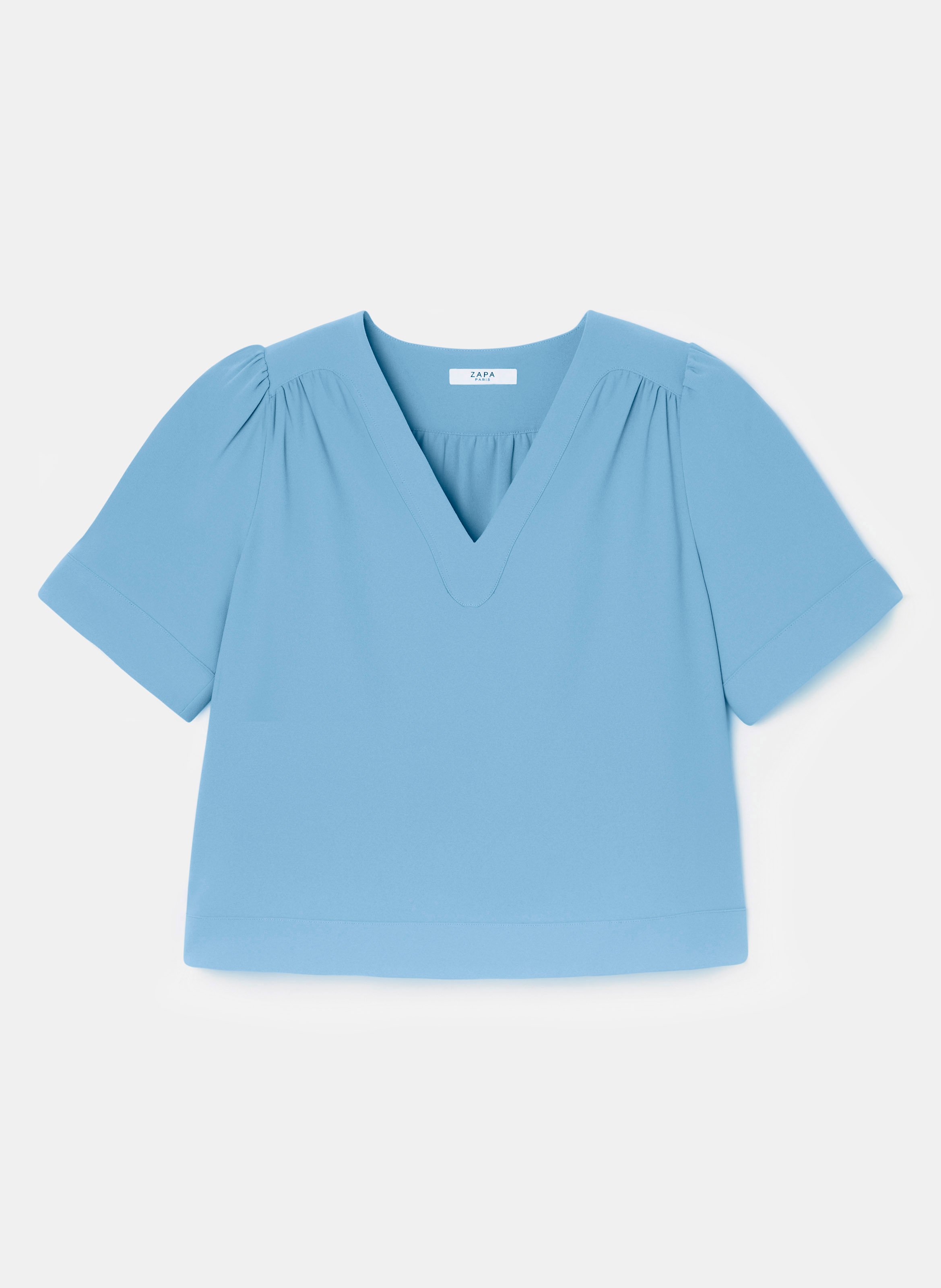 Adoptez ce top fluide à l'allure élégante. Rehaussé de manches courtes évasées, il offre un style chic et féminin. Dans un coloris bleu pétillant, il est idéal pour une journée ensoleillée ou une soirée estivale. Top fluide Coupe droite Col V Epaules froncées Manches courtes évasées Coloris bleu