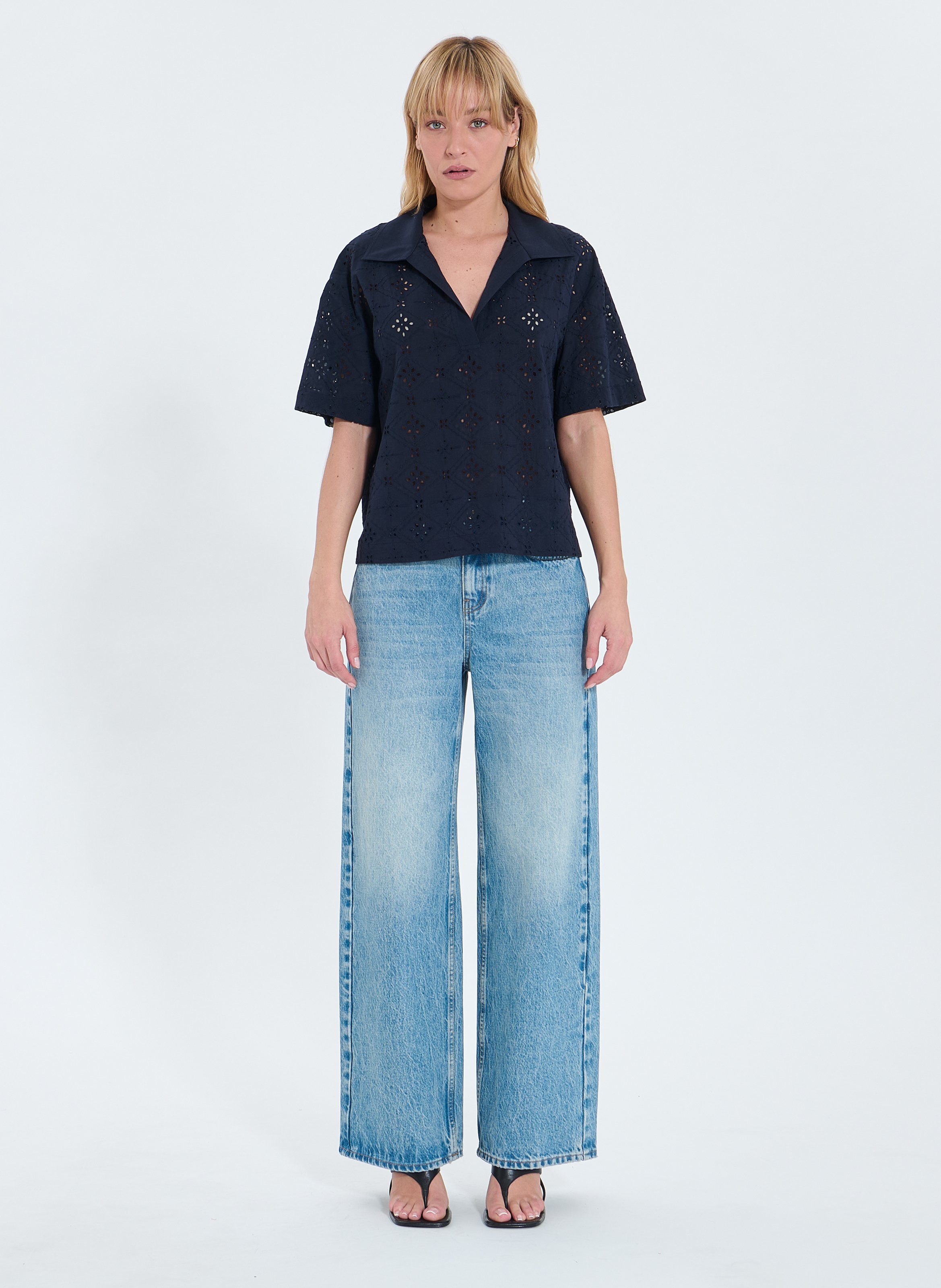 Découvrez le top Teyma écru, à la coupe fluide et élégante. Son col en V et sa matière légère offrent un look féminin et raffiné, idéal pour vos journées en toute simplicité ou pour une tenue plus sophistiquée. Top fluide Col en V Manches courtes Broderie anglaise Coloris nocturne