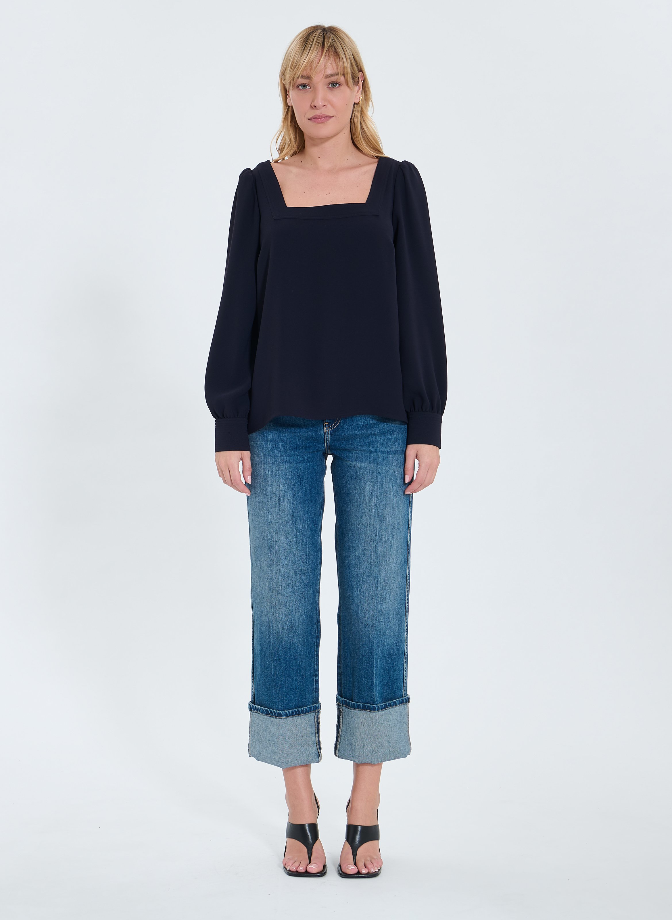 Craquez pour l'élégance de ce top fluide au col carré, qui sublime le décolleté avec raffinement. Son coloris nocturne en fait un incontournable chic et intemporel. Top fluide Col carré Manches longues Coloris nocturne