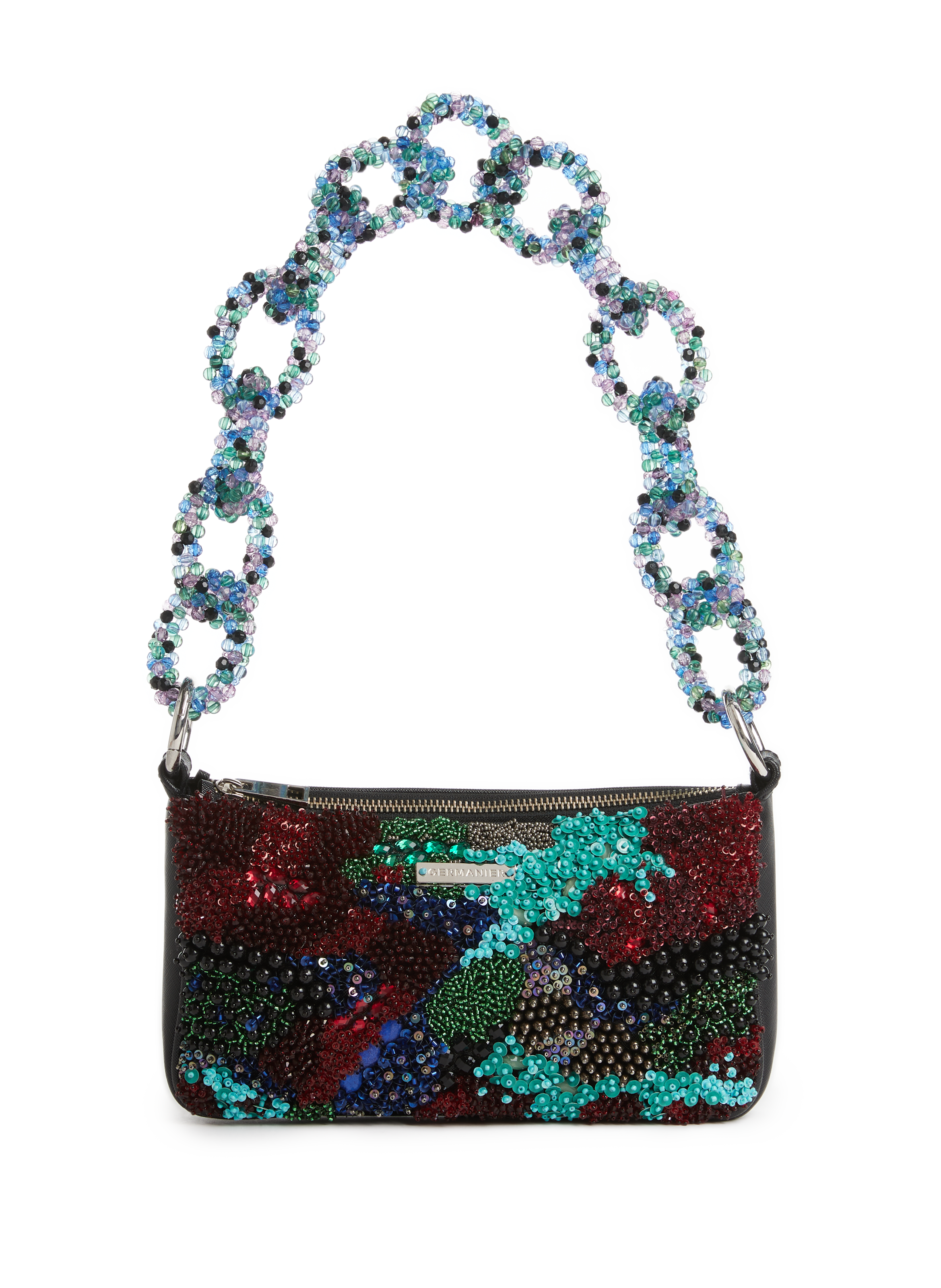 On touche un peu à tout. On a du sac, du sequin, du tricot, de l'imprimé... On a plusieurs pôles de création. À Paris, c'est plus ce que porte une Lady Gaga, une Michelle Obama, ce genre de pièces qu'on doit faire rapidement. Mon agent est ici aussi, donc forcément c'est plus facile pour tout ce qui est célébrités. Le tricot c'est en Suisse, c'est en Valet, là où j'ai grandi, c'est fabriqué par ma famille. Et après on a à Shanghai pour les sequins et les sacs aux Philippines car les perles sont là-bas. On fait ce qu'on peut pour essayer de produire là où c'est sourcé. Par exemple, le tricot, la laine est sourcée en Suisse, donc on produit en Suisse.