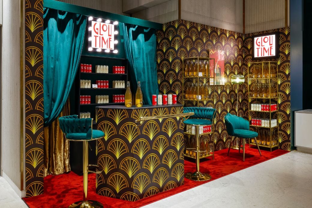 Glou Time, la boisson conviviale nouvelle génération, s'invite au Printemps Haussmann avec son pop-up de Noël aux allures de cabaret. Du vin effervescent BIO aux infusions naturelles fruitées, légères, rafraîchissantes et authentiques, servies dans de chics petites canettes, parfaites pour honorer leur leitmotive : la buvabilité.